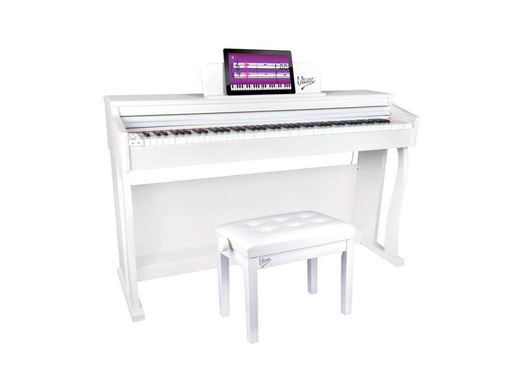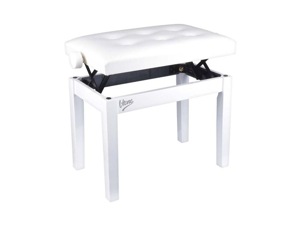 1 WH Klavírní stolička, bílá eko kůže
