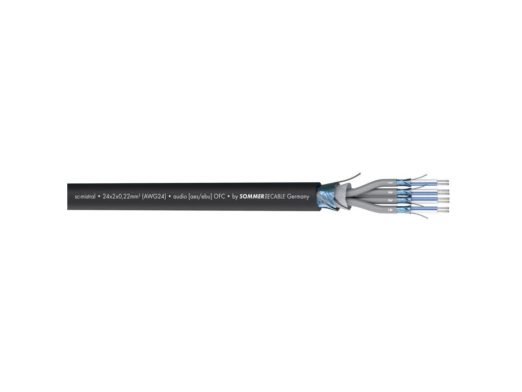 Kabel audio wieloparowy MISTRAL MCF 32 zapewnia wysokiej jakości przewodnictwo dla zastosowań na żywo i studyjnych, ale znajduje również zastosowanie w instalacjach stacjonarnych. 10 lat rozwoju tego kabla i zastosowane opatentowane technologie gwarantują 100% niezawodność. Zastosowano wysokiej jakości miedź OFC. Oddzielne przewody linkowe o konstrukcji 7 x 0,20 mm z cienkich splecionych drucików. Poszczególne pary znajdują się w oddzielnym, numerowanym S-PVC ze 100% ekranowaniem folią AL i jedną całkowitą folią AL na wszystkich parach. Wytrzymała i elastyczna powłoka PVC. Parametry kabla MISTRAL MCF-32 – 32 x kabel symetryczny, przekrój splecionych par 32 x 2 x 0,22 mm, całkowita średnica S-PVC 26,8 mm, 100 % ekranowanie, waga 1 m 836 g, zakres temperatur użytkowania -30° C do 70° C, kolor czarny.