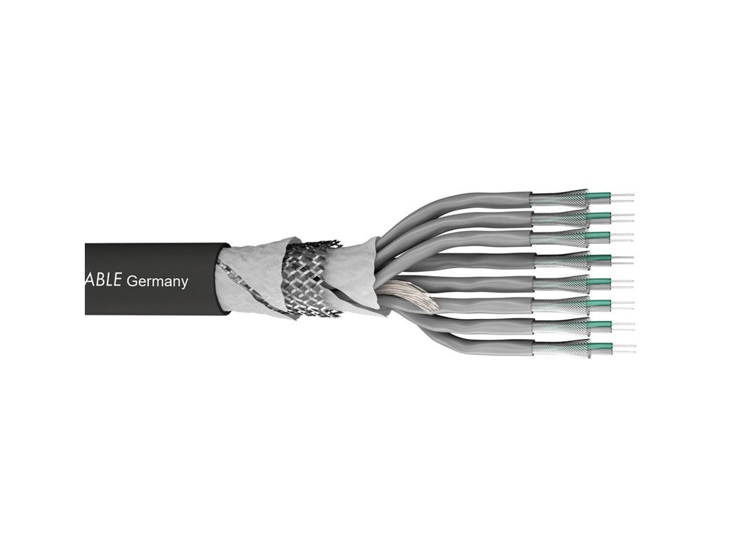 Kabel analogowy wieloparowy 8-parowy, 8 par przewodów, 8 x 2 x 0,14 mm, oddzielne posrebrzane ekranowanie poszczególnych par, ekranowanie 90%, izolacja PUR o średnicy 9,9 mm, zastosowana wysokiej jakości miedź OFC, numerowane pary, waga 1 m 138 g, zakres temperatur pracy od -40°C do +70°C, kolor czarny. Idealny do zastosowań na żywo i instalacji stałych.