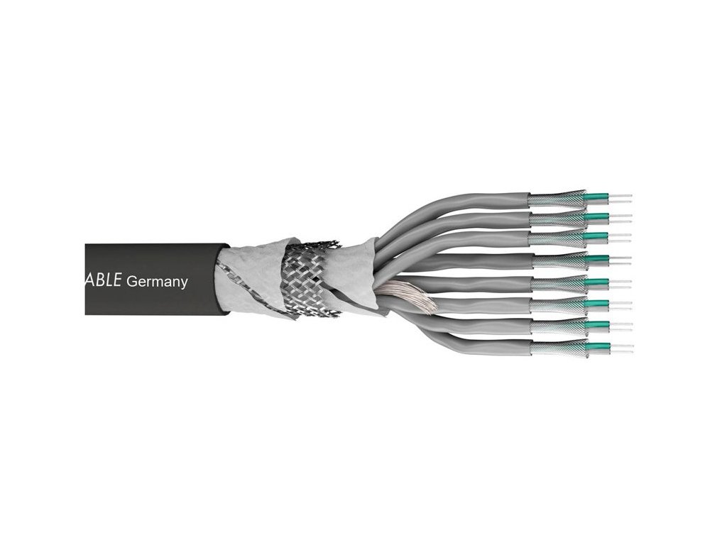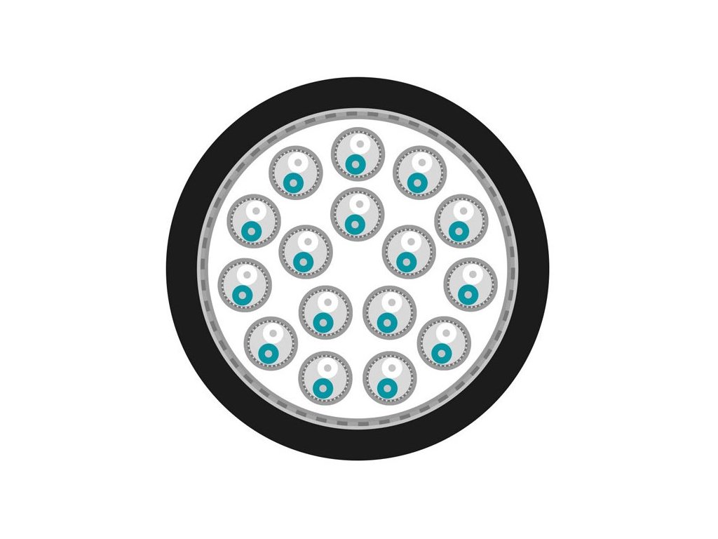 Kabel wieloparowy, 16 par przewodów ekranowanych oddzielnie posrebrzaną miedzianą plecionką i izolacją PVC z numeracją + całkowite ekranowanie kabla posrebrzaną miedzianą plecionką.