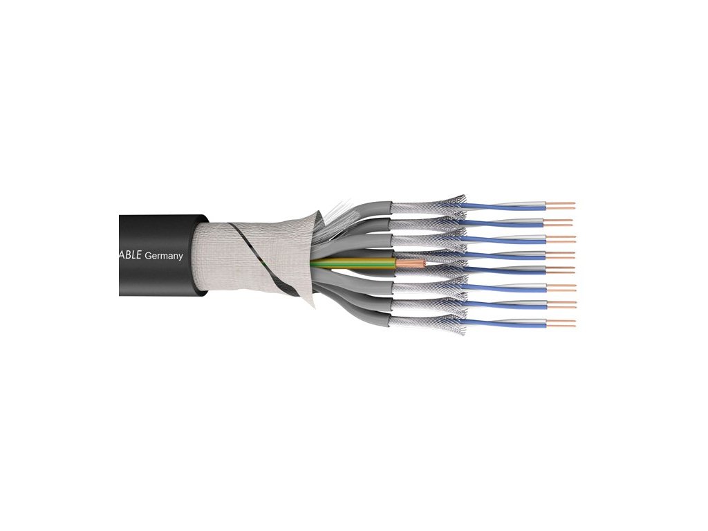 Wielożyłowy kabel audio AES/EBU zapewnia wysokiej jakości przewodnictwo dla zastosowań na żywo i studyjnych, ale znajduje również zastosowanie w instalacjach stałych. Zastosowanie do analogowej i cyfrowej transmisji sygnału. Zastosowano wysokiej jakości miedź OFC o czystości 99,99%. Linkowa żyła przewodu o konstrukcji 36 x 0,07 mm drobnych splecionych drucików o bardzo niskiej pojemności 45 pF. Dzięki temu drobnemu splotowi kabel jest doskonale giętki. Poszczególne pary znajdują się w oddzielnym, numerowanym S-PVC. Drobne miedziane spiralne ekranowanie o współczynniku 98%. Wytrzymała i wyjątkowo giętka powłoka S-PVC o wystarczająco grubej ściance 2 mm.