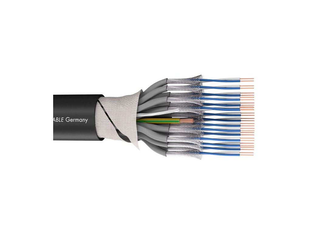 Wielożyłowy kabel audio AES/EBU zapewnia wysokiej jakości przewodnictwo dla zastosowań na żywo i studyjnych, ale znajduje również zastosowanie w instalacjach stałych. Zastosowanie do analogowej i cyfrowej transmisji sygnału. Zastosowano wysokiej jakości miedź OFC o czystości 99,99%. Linkowa żyła przewodu o konstrukcji 36 x 0,07 mm drobnych splecionych drucików o bardzo niskiej pojemności 45 pF. Dzięki temu drobnemu splotowi kabel jest doskonale giętki. Poszczególne pary znajdują się w oddzielnym, numerowanym S-PVC. Drobne miedziane spiralne ekranowanie o współczynniku 98%. Wytrzymała i wyjątkowo giętka powłoka S-PVC o wystarczająco grubej ściance 2 mm.