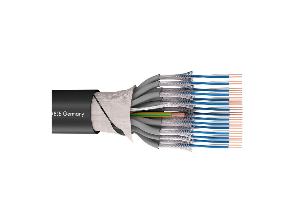 Wielożyłowy kabel audio AES/EBU zapewnia wysokiej jakości przewodnictwo dla zastosowań na żywo i studyjnych, ale znajduje również zastosowanie w instalacjach stałych. Zastosowanie do analogowej i cyfrowej transmisji sygnału. Zastosowano wysokiej jakości miedź OFC o czystości 99,99%. Linka przewodu o konstrukcji 48 x 0,14 mm z cienkich splecionych drutów o bardzo niskiej pojemności 45 pF. Dzięki temu drobnemu splotowi kabel jest doskonale giętki. Poszczególne pary znajdują się w oddzielnym, numerowanym S-PVC. Drobne miedziane spiralne ekranowanie o współczynniku 98%. Wytrzymała i niezwykle elastyczna powłoka S-PVC o wystarczająco grubej ściance 2 mm, przekrój skręconych par 48 x 2 x 0,14 mm, całkowita średnica S-PVC 29 mm.