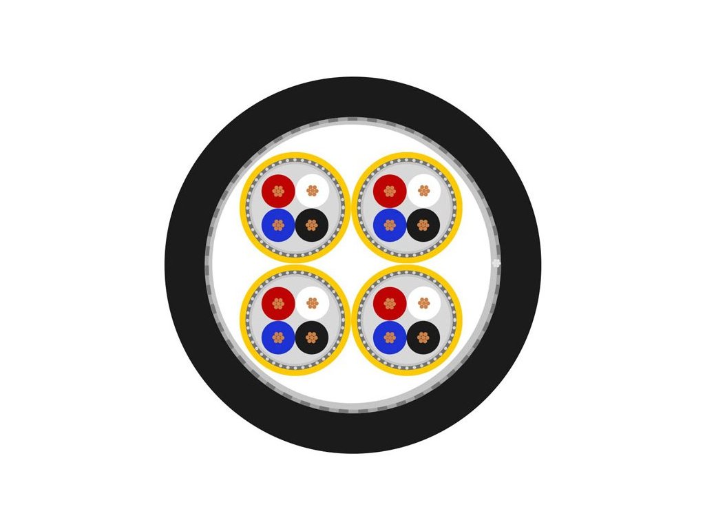 Wysokiej klasy kabel wieloparowy, 4 pary przewodów oddzielnie ekranowane posrebrzaną miedzianą plecionką, folią metalową i izolacją PVC z numeracją + całkowite ekranowanie kabla posrebrzaną miedzianą plecionką.