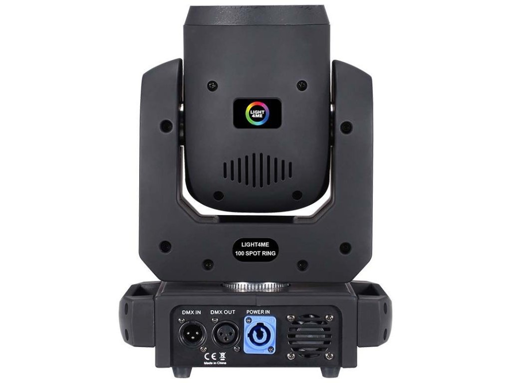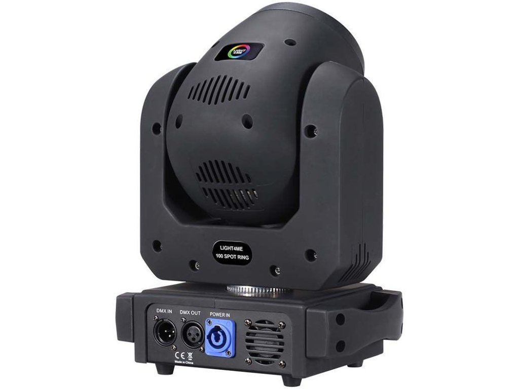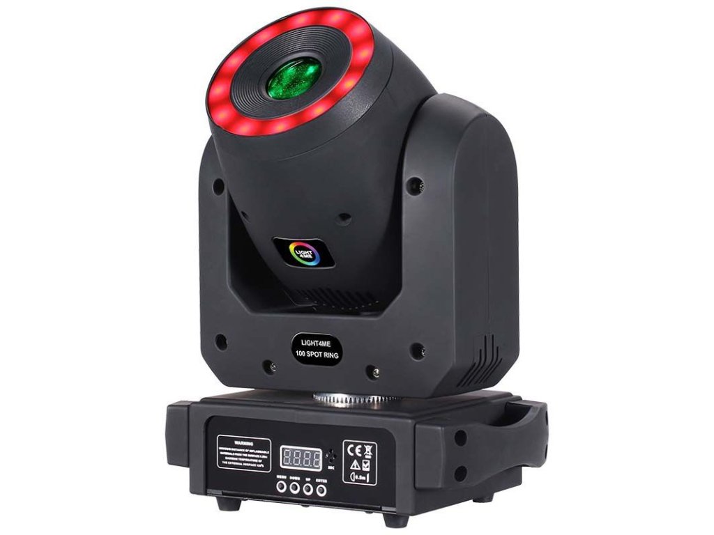 Light4Me 100 Spot Ring to zaawansowana ruchoma głowa LED typu spot, wyposażona w bardzo wydajną białą diodę 100 W i dodatkowy pierścień efektowy z 12 diodami RGB 3w1 o mocy 0,3 W, które otaczają główną soczewkę. Dzięki kompaktowej konstrukcji i niskiej wadze głowica jest łatwa w transporcie, dzięki czemu idealnie nadaje się zarówno do instalacji stacjonarnych, jak i mobilnych. Świetnie sprawdza się na koncertach, przedstawieniach, pokazach, w klubach tanecznych i dyskotekach, a także jako urządzenie oświetleniowe dla mobilnych DJ-ów.