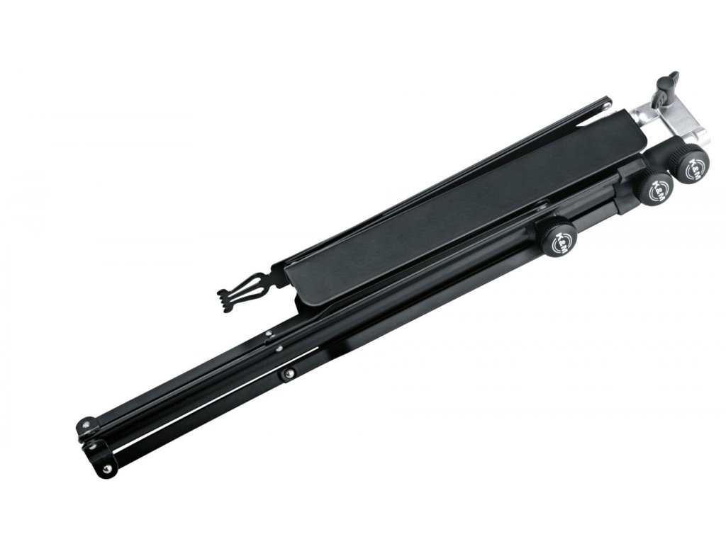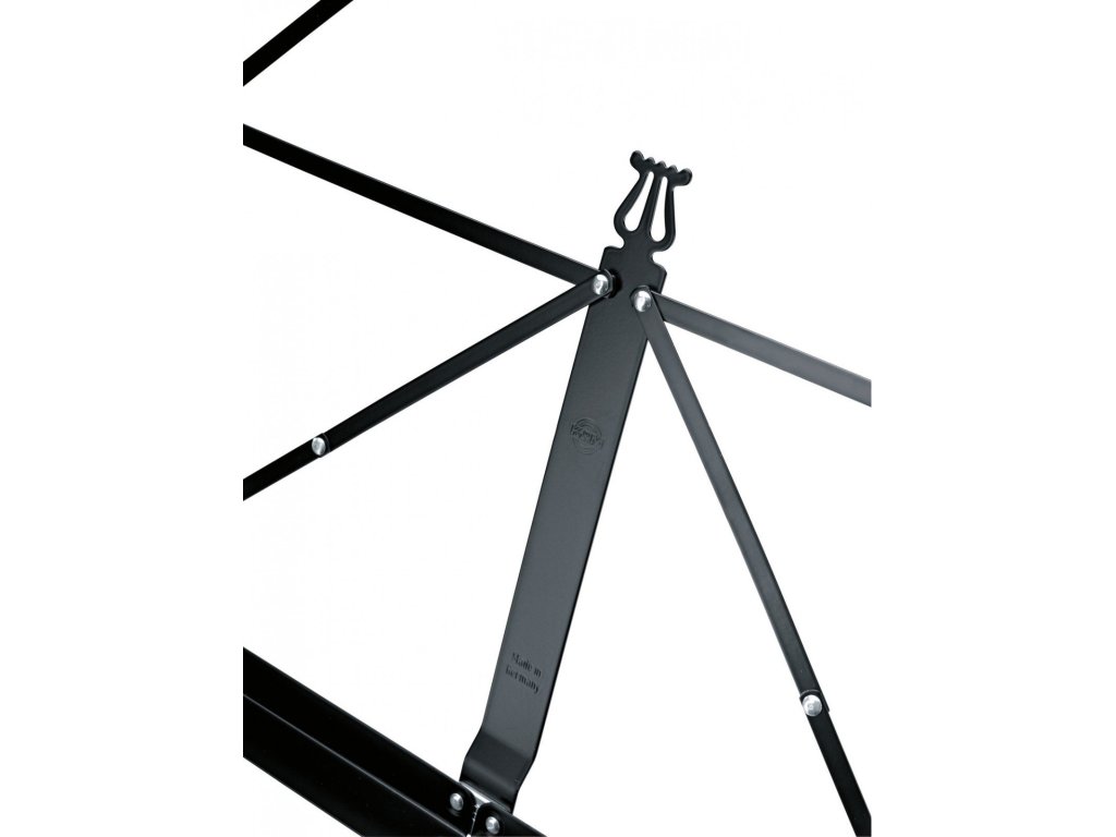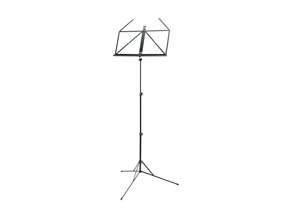 Składany pulpit na nuty. Wysokość 650/1225 mm, wymiary płyty 440 x 215 mm. Produkowany w kolorze czarnym i niklowanym. Powłoka proszkowa jest wyjątkowo odporna na zużycie i gwarantuje optymalną ochronę przed korozją.