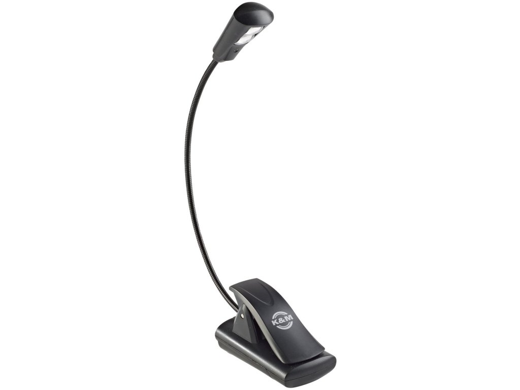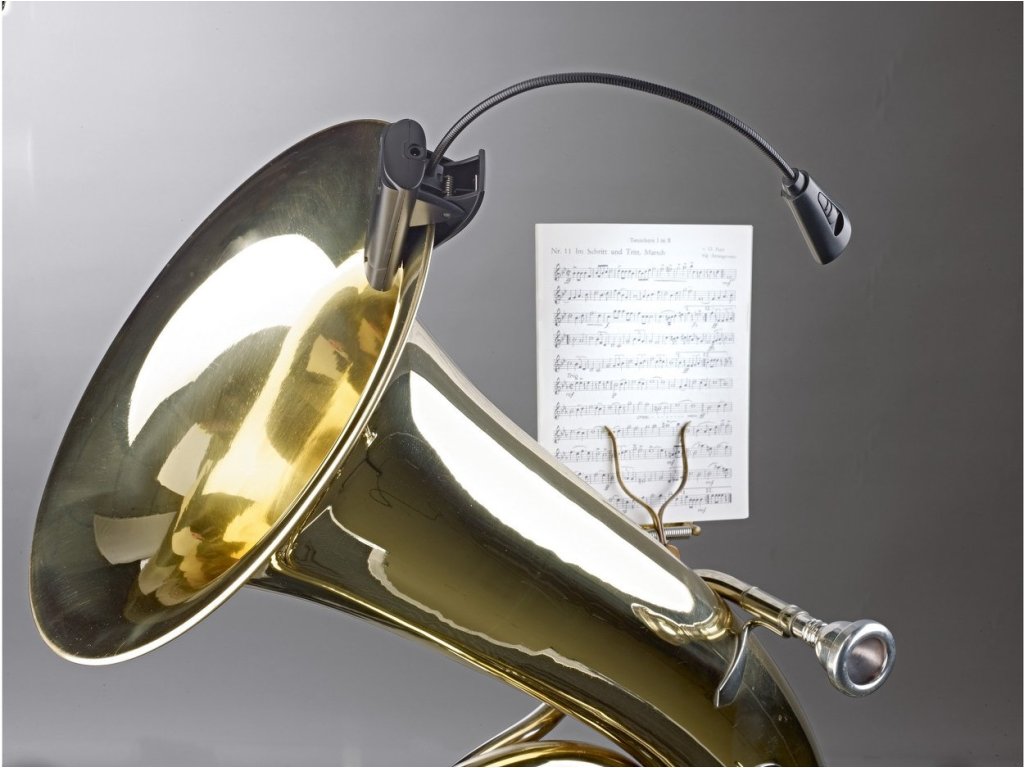 Uniwersalna lampka »2 LED FlexLight« z 2 bardzo jasnymi i trwałymi diodami LED o żywotności 100 000 godzin. Elastyczna "gęsia szyja" zapewnia niezwykle zmienną, regulowaną wiązkę światła. Bardzo szeroki klips (do 25 mm) mocuje się do pulpitu na nuty lub np. do instrumentu dętego, książki lub blatu stołu. Może być również używana jako lampka stojąca. Bardzo kompaktowe i łatwe w użyciu. Zawiera 3 baterie (1,5 V micro AAA). Żywotność baterii do 20 godzin. Zasilanie lampki jest również możliwe za pomocą zasilacza prądu zmiennego (nie wchodzi w skład zestawu).