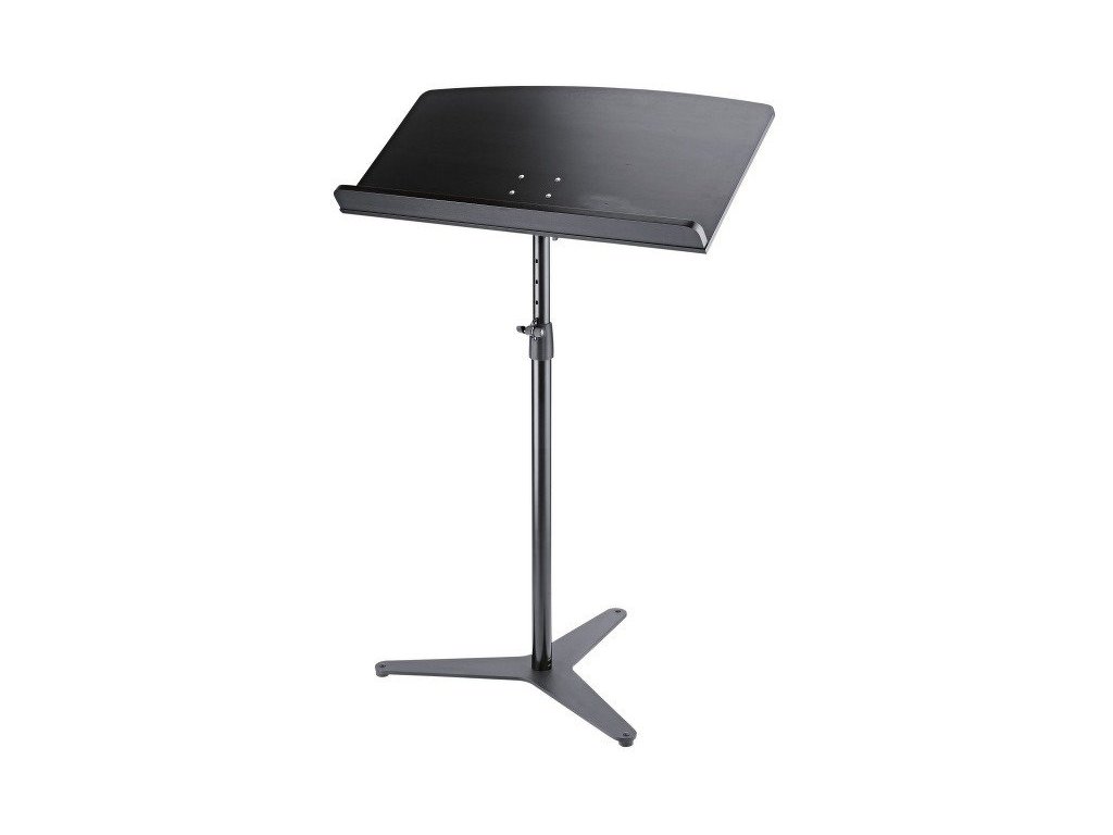 Klasyczny pulpit dyrygencki wykonany z wielowarstwowego laminowanego drewna bukowego. Wymiary blatu 800 x 400 mm. Pasuje do statywów dyrygenckich „König & Meyer” 12330 i 12331. Produkowany w kolorze czarnym.