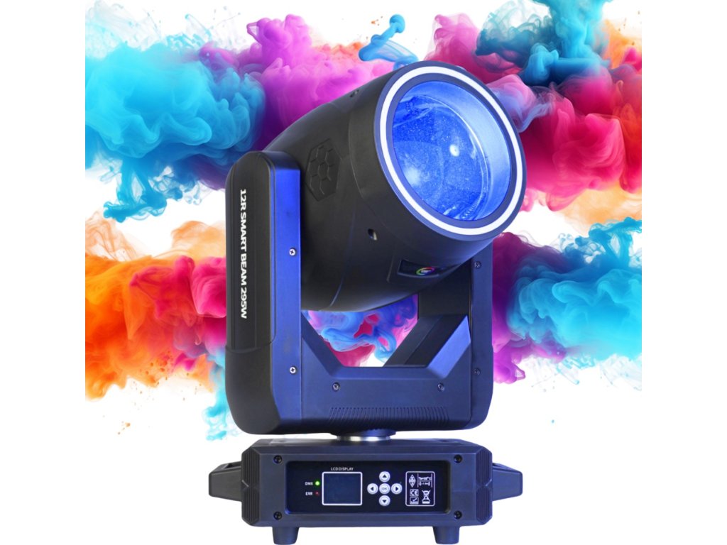 - Źródło światła: lampa wyładowcza 12R 295W + efekt pierścieniowy 31x0,2W RGB LED 3w1 (czerwony, zielony, niebieski)