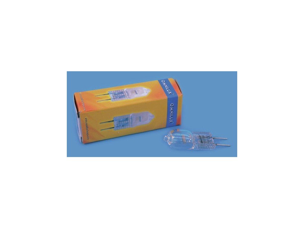 Źródło światła do efektów świetlnych z promieniami. Łatwa wymiana. Zasilanie 12V, moc 100W, trzonek G-6.35, żywotność 2000 godzin, temperatura barwowa 2900K.