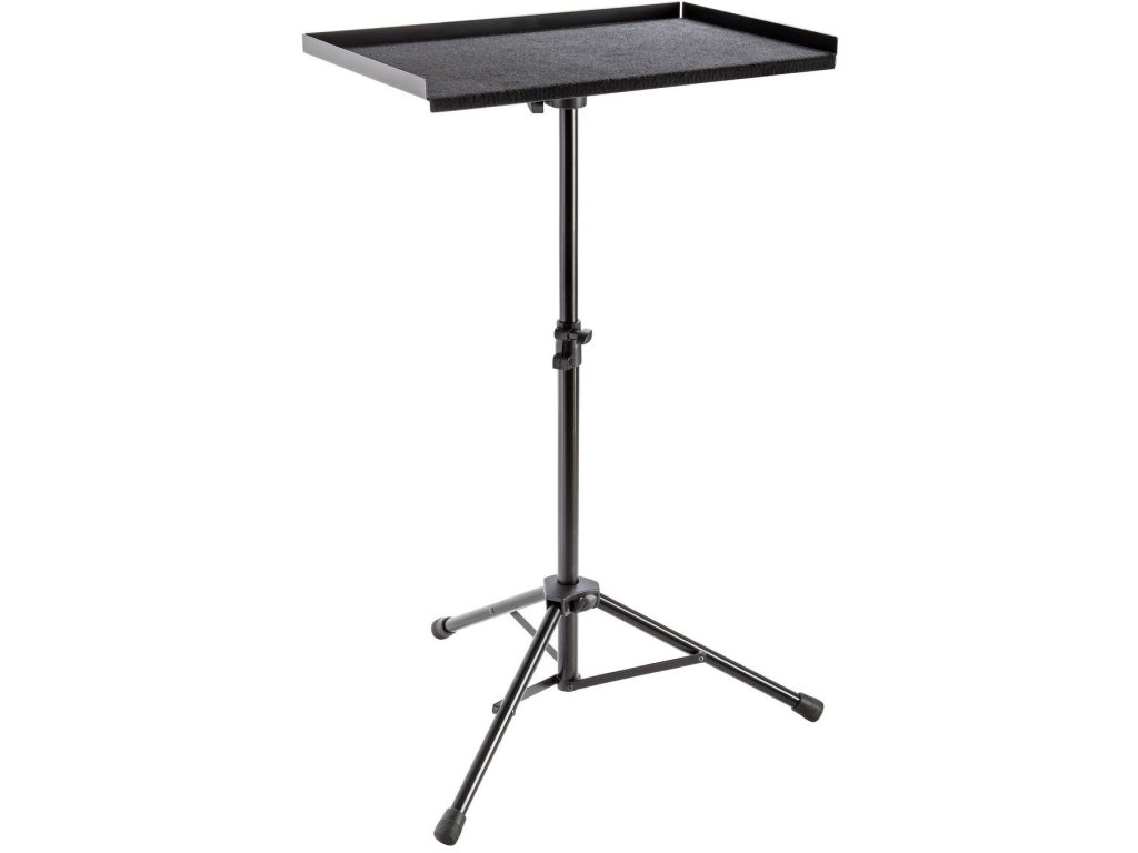 Stabilny i praktyczny stojak na perkusję i inne akcesoria. Duża, solidna stalowa płyta z kołnierzem jest otwarta z jednej strony i pokryta filcem, aby wyeliminować hałas. Wysokość 700/1250 mm. Wymiary płyty 573 x 373 mm. Podczas transportu płytę można łatwo wyjąć bez użycia narzędzi, a trójnożny statyw można szybko złożyć. Produkowany w kolorze czarnym.