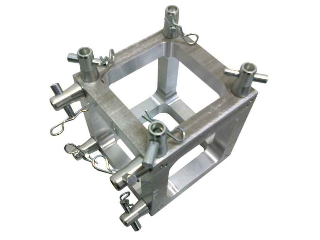 Element konstrukcyjny do budowy słupów i podiów do zawieszania instalacji oświetleniowych lub dźwiękowych. Element ma kształt kostki i umożliwia tworzenie zespołów konstrukcyjnych pod kątem 90°. Box Corner wykonany jest z czterech prętów o średnicy 20 mm i grubości ścianek 2 mm. Konstrukcja wykonana jest ze stopu AlMgSi1 T6, dzięki czemu każdy z elementów serii DT14 zachowuje niską wagę i wysoką wytrzymałość. Element jest wyposażony w końcówki do zasilania kolejnych elementów.