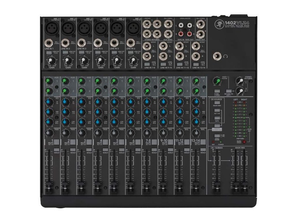 Konkretnie 1402-VLZ4 to kompaktowy 14-kanałowy mikser, który oferuje 14 wejść liniowych i 6 wejść mikrofonowych, przy czym w mikrofonowych zastosowano wysokiej jakości przedwzmacniacze Onyx, które możesz znać z najwyższych serii Mackie. Oferują one zakres wzmocnienia do 60 dB, dzięki czemu w zakresie dynamicznym można uzyskać do 128,5 dB. Zapewniają one najwierniejsze wzmocnienie sygnału na wszystkich częstotliwościach i minimalny poziom zniekształceń. Oczywiście oferuje również zasilanie phantomowe przy użyciu mikrofonów pojemnościowych. W 1402-VLZ3 można również użyć wejść instrumentalnych, dzięki którym nie będziesz potrzebował żadnych DI boxów.