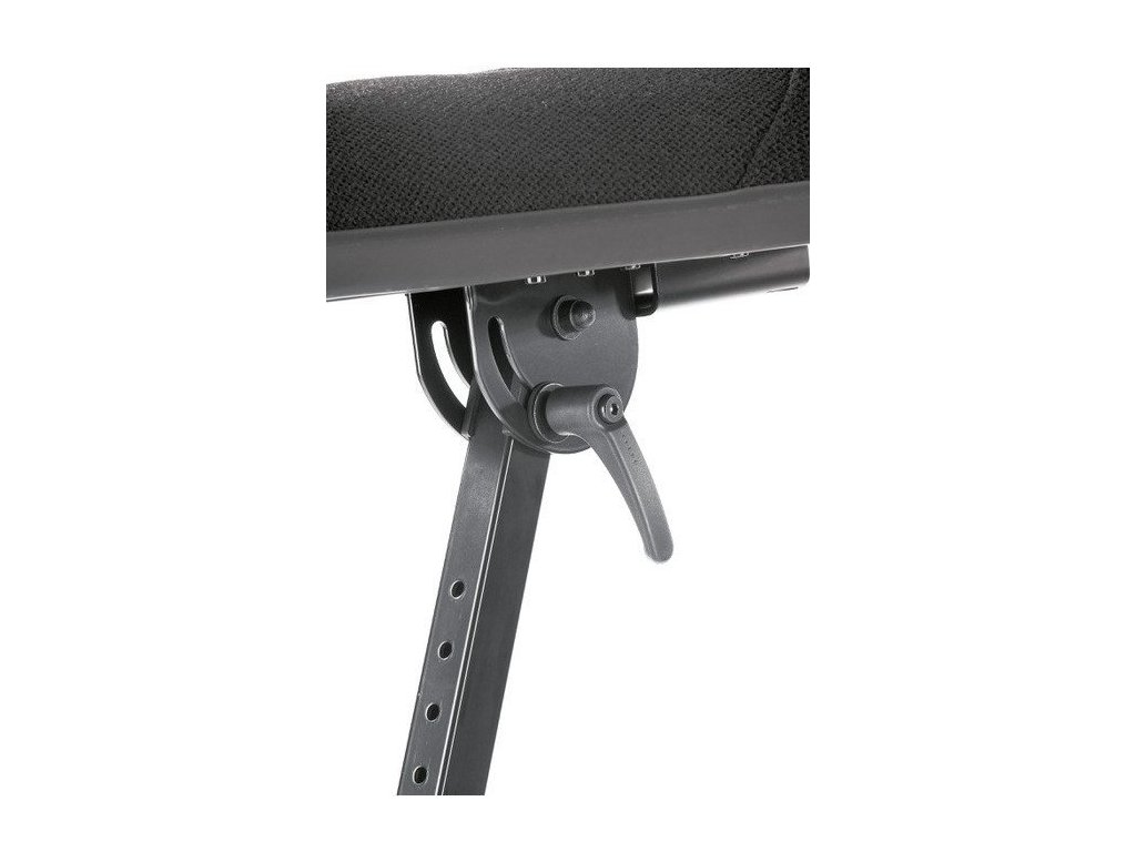 Pneumatyczny stołek ze składaną konstrukcją. Ergonomicznie ukształtowane siedzisko o wymiarach 380 x 350 mm pokryte czarną tkaniną odporną na zużycie. Wysokość 600/900 mm. Regulowany na wysokość podnóżek. Produkowany w kolorze czarnym.