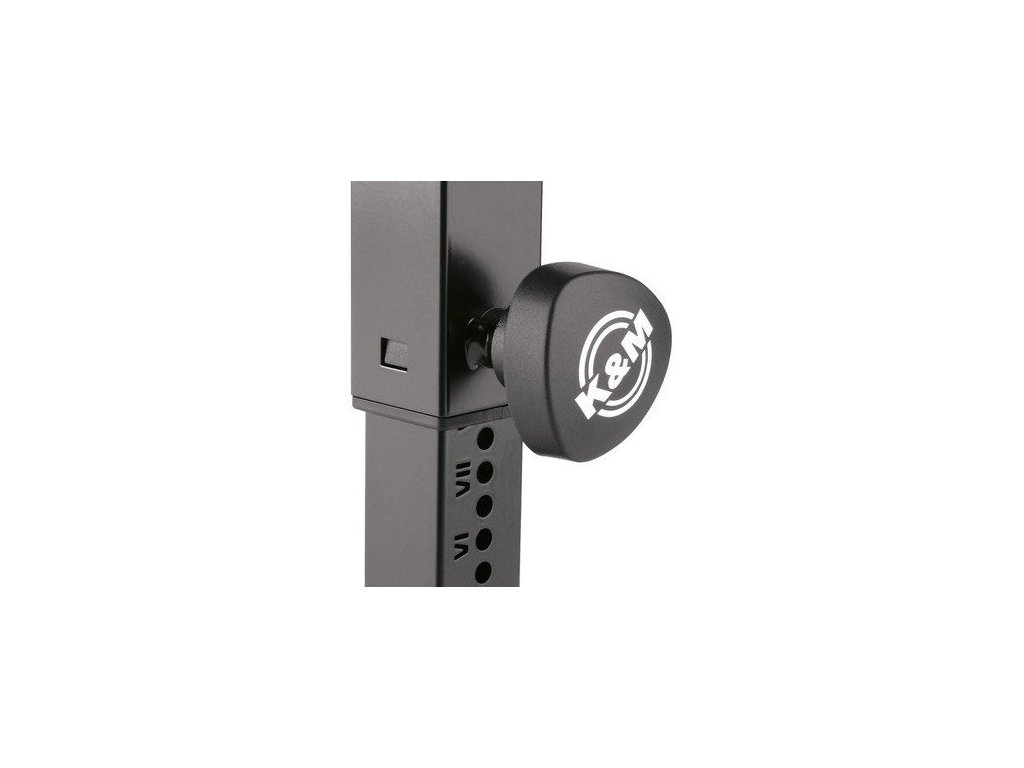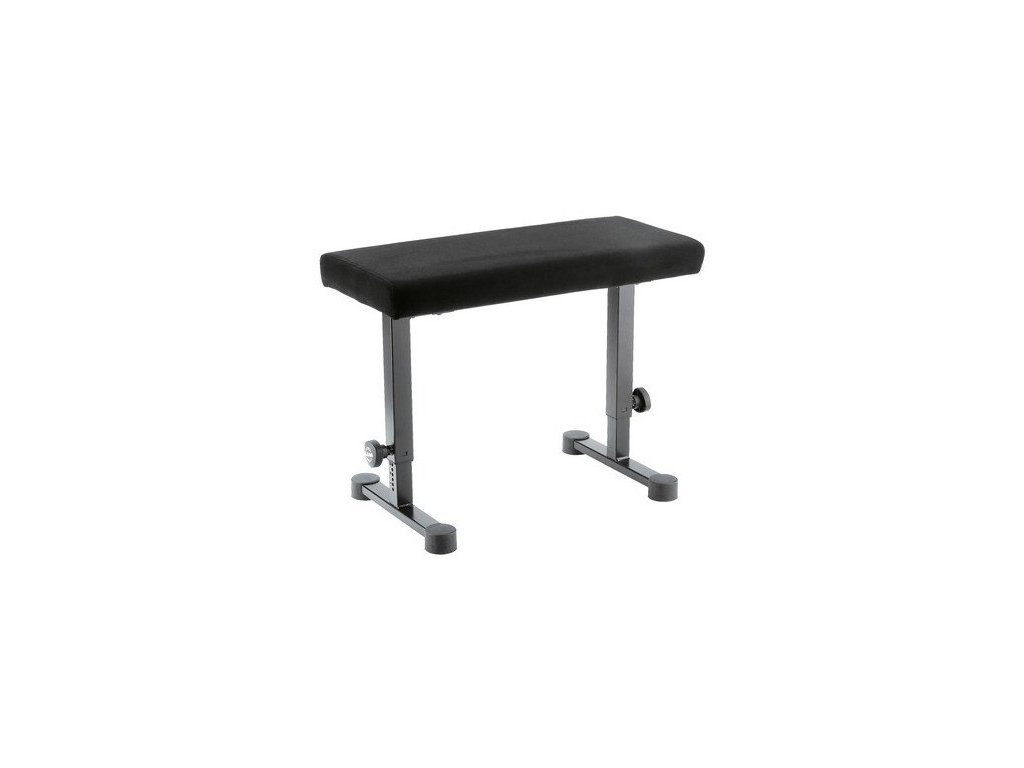Stabilny stalowy stołek dla klawiszowców. Doskonały komfort siedzenia. Siedzisko o wymiarach 660 x 330 mm jest pokryte czarną tkaniną odporną na zużycie. Precyzyjna regulacja wysokości za pomocą sprężynowych śrub blokujących, wyraźna skala wysokości. Wysokość stołka 430/670 mm. Produkowany w kolorze czarnym.
