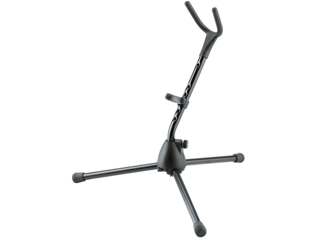 Regulowany, składany statyw do saksofonu sopranowego z wygiętą szyjką. Wysokość 485 mm. Plastikowa podstawa wzmocniona włóknem szklanym. Elastyczne górne ramię nośne do korpusów o różnych rozmiarach. Statyw pokryty jest warstwą tworzywa sztucznego chroniącą instrument przed zarysowaniami. Produkowany w kolorze czarnym.
