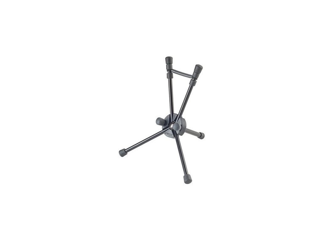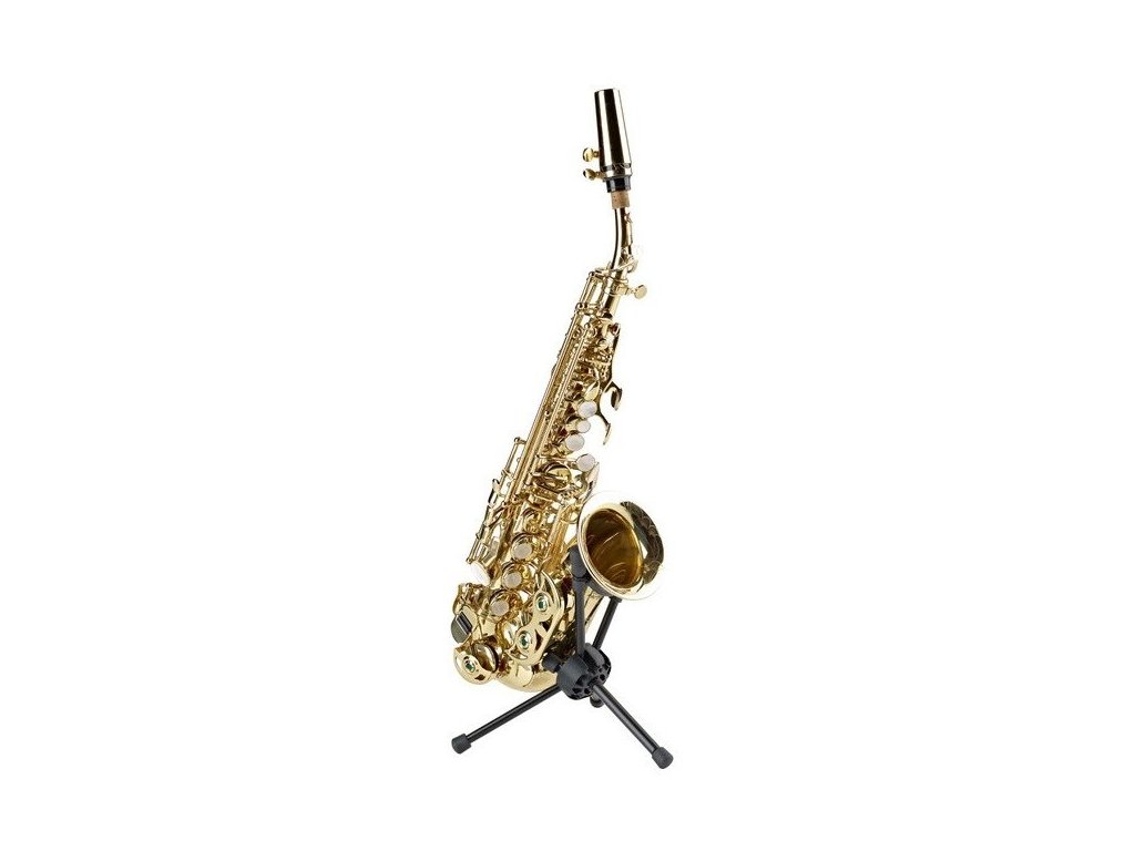 Mały i kompaktowy statyw na saksofon sopranowy »Saxxy«. Miękkie gumowe podkładki chronią instrument przed zarysowaniami. Wysokość 188 mm. Łatwe i szybkie składanie statywu. Dostarczany w komplecie z welurowym pokrowcem transportowym. Produkowany w kolorze czarnym.
