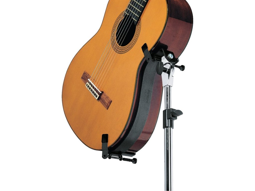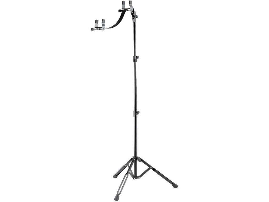 Stojak na gitary akustyczne. Wysokość 690/1550 mm. Odpowiedni do gitary o grubości 75-135 mm. Instrument jest chroniony przed zarysowaniami filcowymi podkładkami. Produkowany w kolorze czarnym.
