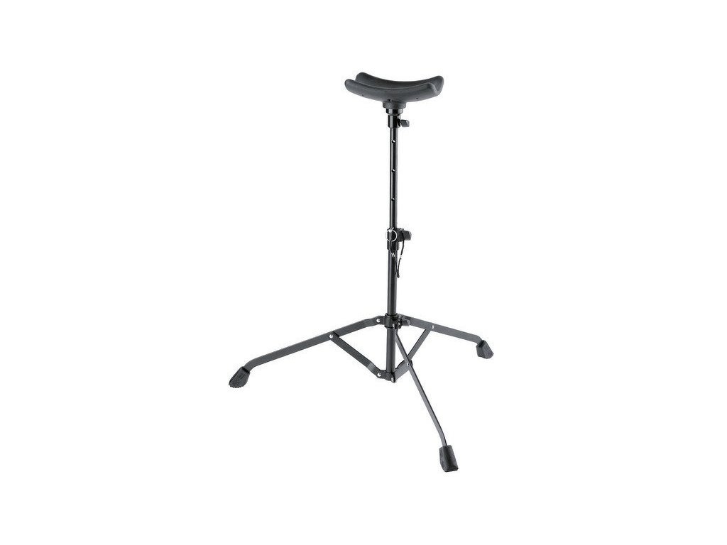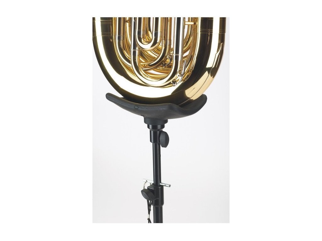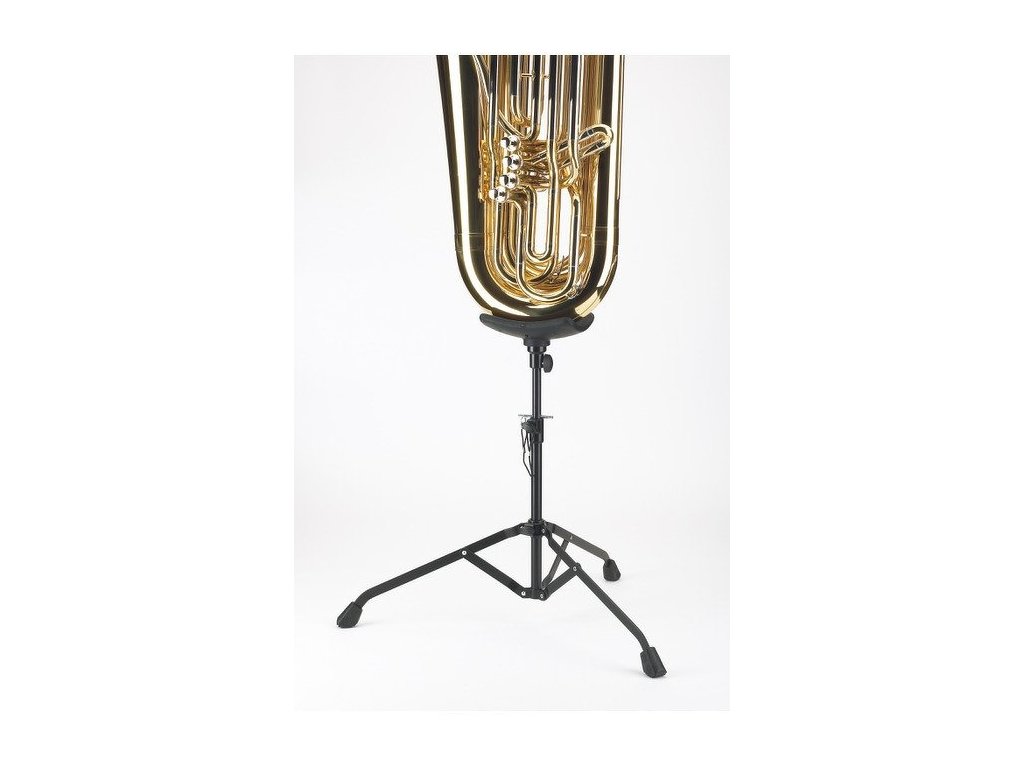 Składany stalowy stojak do wszystkich typów tub. Szeroka konstrukcja podstawy. Łatwa regulacja i składanie. Stojak pokryty jest gumową warstwą chroniącą instrument przed zarysowaniem. Wysokość 450/800 mm. Nośność 10 kg. Produkowany w kolorze czarnym.