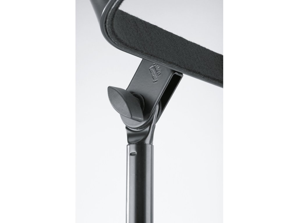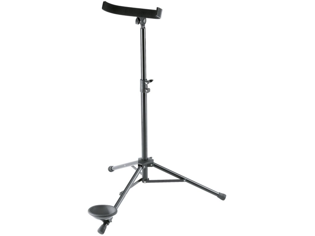 Solidny stalowy stojak na kontrafagot. Podpora instrumentu jest wyposażona w filcową podkładkę dla ochrony instrumentu. Stojak posiada w dolnej części nóg gumowy koszyk zapewniający podparcie instrumentu. Wysokiej jakości materiały i nowoczesne procesy produkcyjne gwarantują długą żywotność tego stojaka. Wysokość 700/1200 mm. Produkowany w kolorze czarnym.