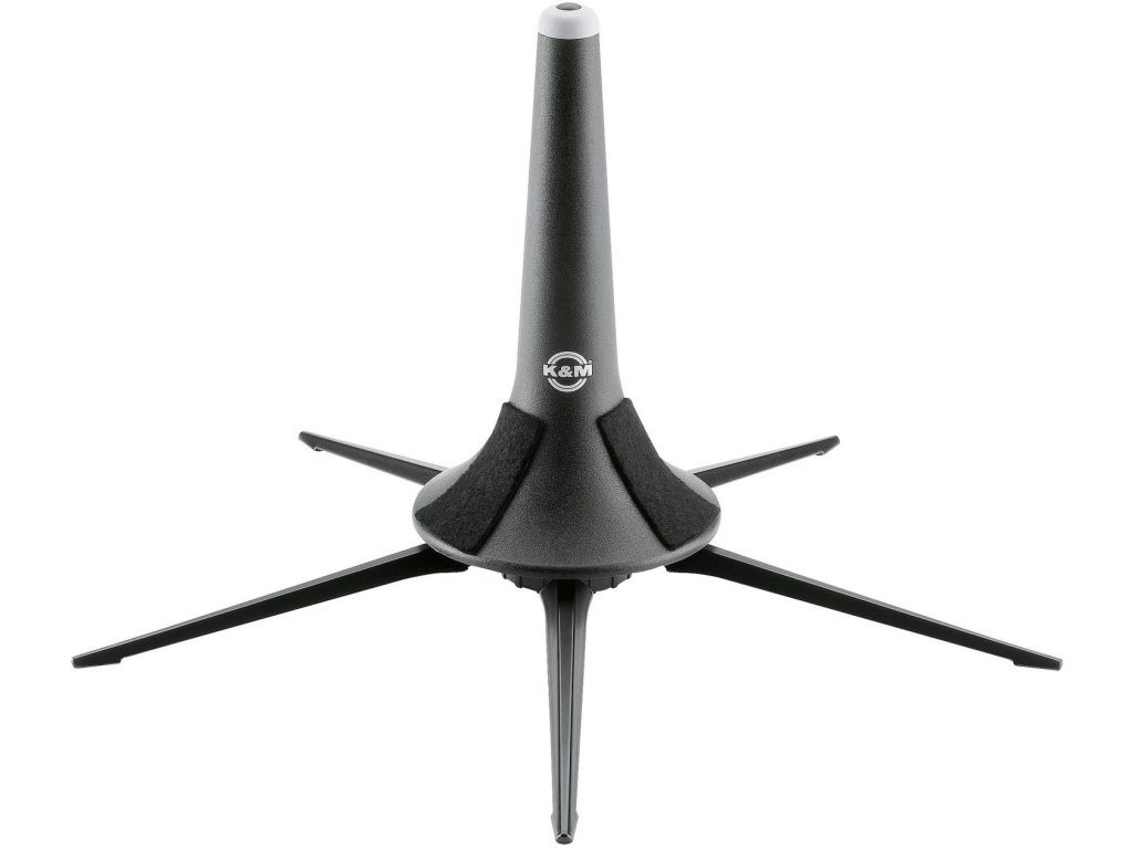 Stabilny 5-nożny statyw na trąbkę. Plastikowy kołek z filcowymi podkładkami chroniącymi powierzchnię instrumentu. Zdejmowane metalowe nóżki. Górna część kołka/bolca jest gumowana. Złożony statyw można umieścić w korpusie instrumentu. Wysokość 205 mm. Produkowany w kolorze czarnym.
