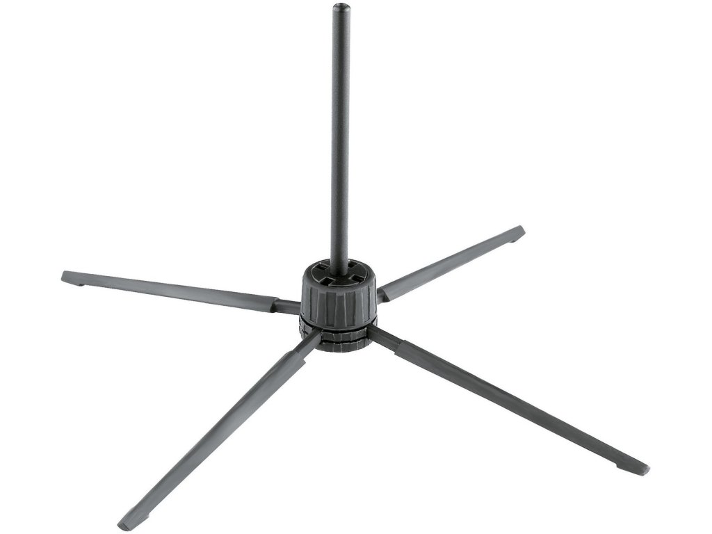 Kompaktowy 4-nożny statyw na flet sopranowy i piccolo. Gumowy kołek o średnicy 6,5 mm jest wzmocniony stalowym rdzeniem. Wysokość 145 mm. Składany statyw zmieści się niemal w każdej kieszeni. Produkowany w kolorze czarnym.