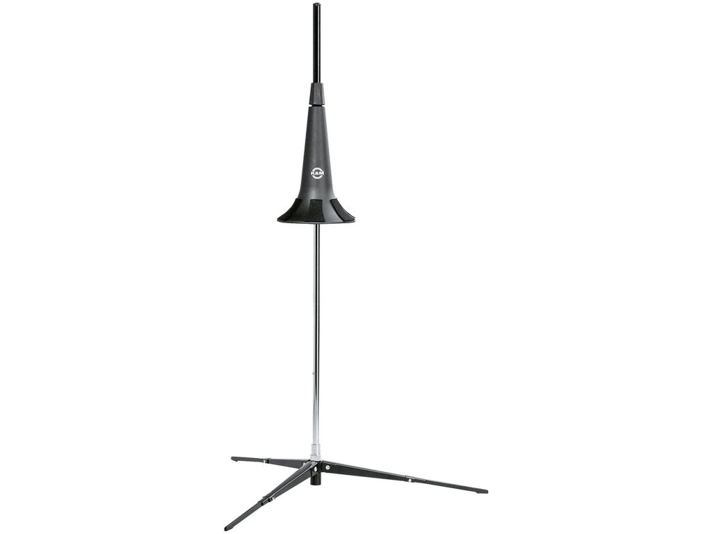 Opatentowany statyw na puzon z szeroką podstawą. Plastikowy kołek z filcowymi podkładkami chroniącymi powierzchnię instrumentu. Wysokość 585/885 mm. Złożony stojak można przenosić wewnątrz instrumentu. Produkowany w kolorze czarnym.