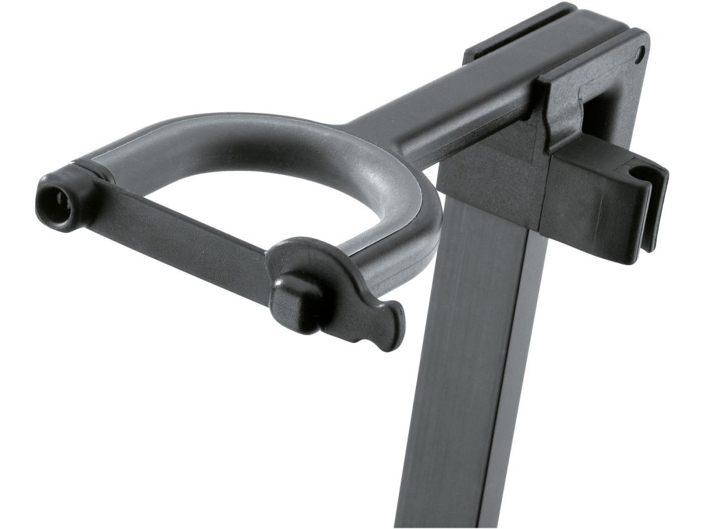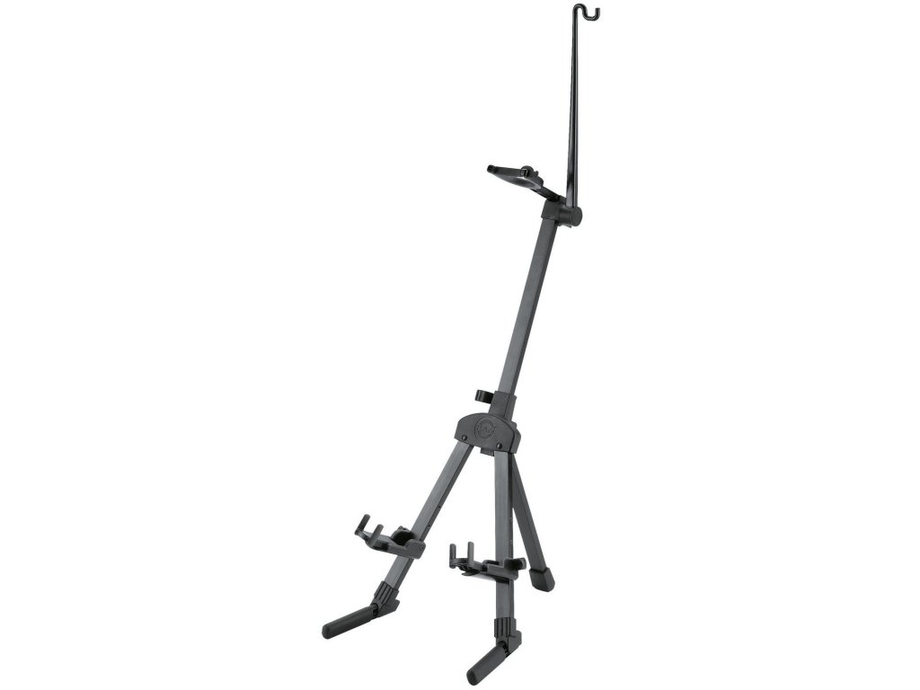 Stabilny aluminiowy statyw na skrzypce. Wysokość 360/570 mm. Ramiona nośne można regulować dla różnych rozmiarów skrzypiec i są pokryte miękkim tworzywem sztucznym, które chroni powierzchnię instrumentu przed uszkodzeniem. Regulacja wysokości za pomocą dźwigni zaciskowej. Zintegrowany uchwyt na smyczek. Produkowany w kolorze czarnym.