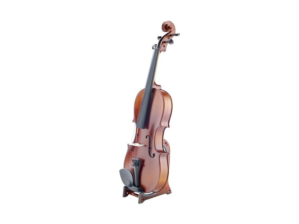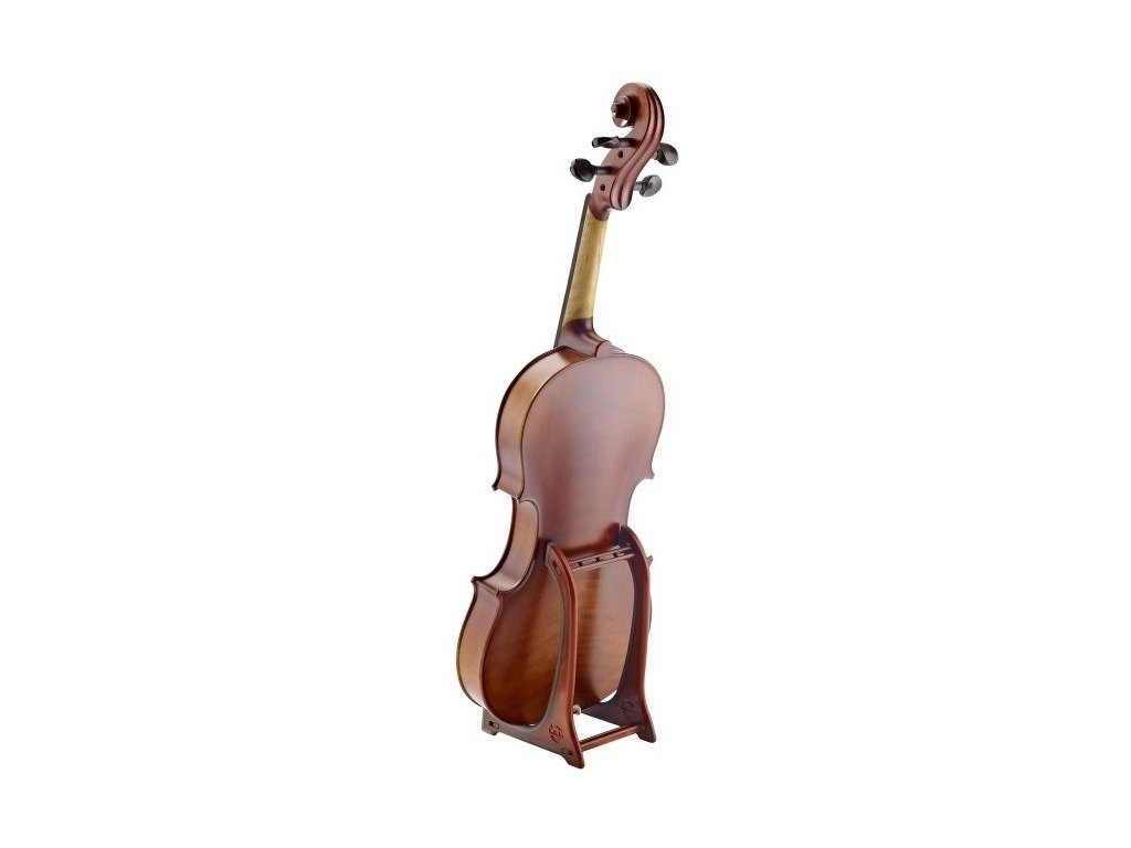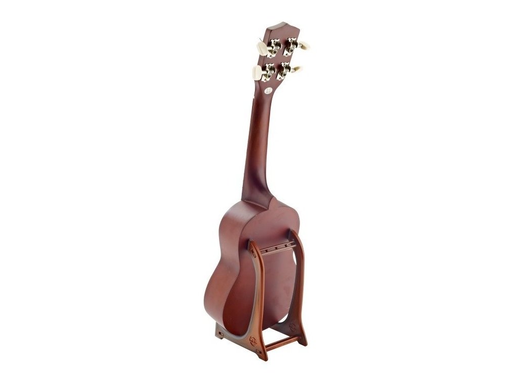 Kompaktowy stojak na skrzypce i ukulele. Wysokość 205 mm. Stojak posiada gumowane ramiona podtrzymujące dla ochrony powierzchni instrumentu. Stabilna podstawa z mocnym czteropunktowym systemem nośnym i trzema poprzecznymi rozpórkami. Do przechowywania i transportu niezwykle lekki stojak składa się do niewielkich, kompaktowych rozmiarów. Produkowany w drewnianym wyglądzie.