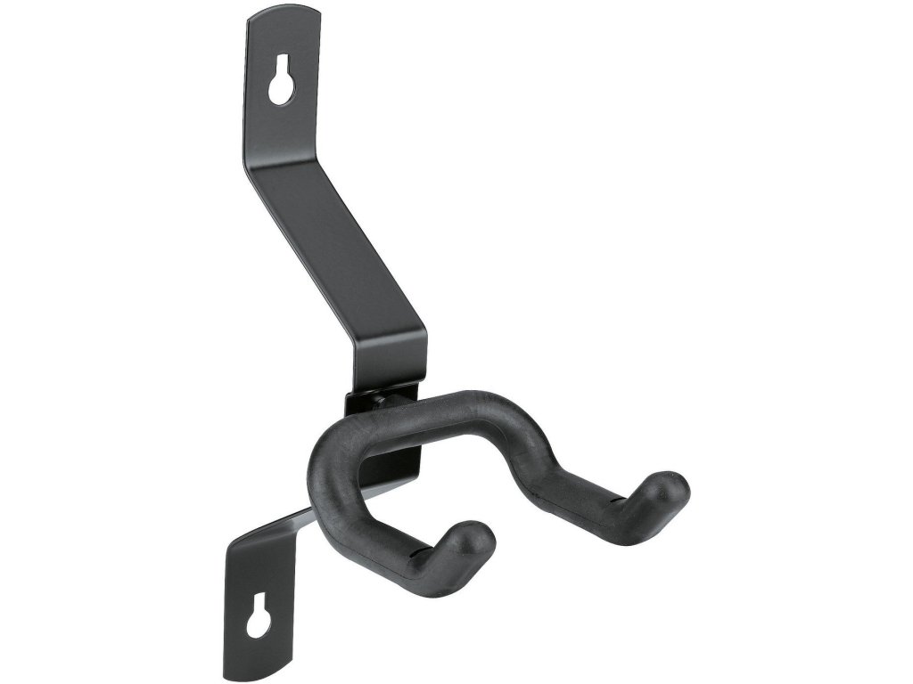 Uchwyt do mocowania gitary na ścianie z dwoma punktami mocowania. Ramiona nośne do mocowania gitary są gumowane. Wymiary: 84 x 215 x 150 mm. Odpowiedni do gitar akustycznych i elektrycznych. Produkowany w kolorze czarnym.