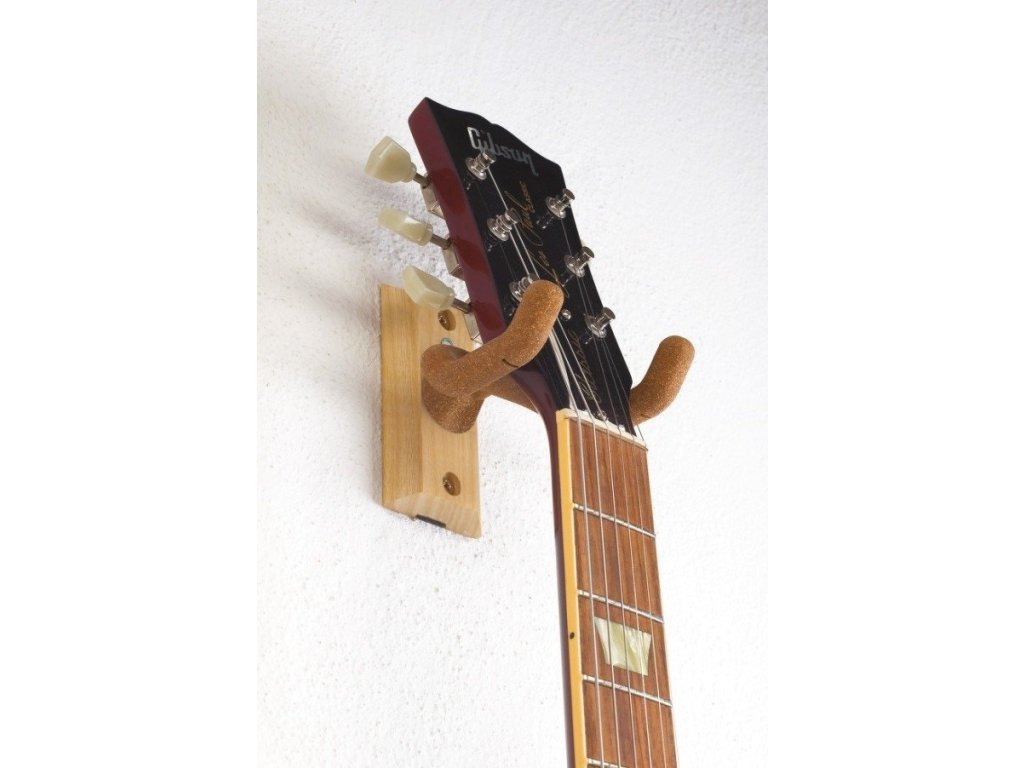 Atrakcyjny i funkcjonalny gitarowy uchwyt ścienny z elementami drewnianymi. Uchwyt jest pokryty ochronną warstwą korkową, która zapobiega uszkodzeniom instrumentu. Zintegrowana metalowa listwa w płycie zapewnia jego bezpieczne mocowanie. Nadaje się do gitar akustycznych i elektrycznych. Produkowany jest w kolorze korkowym.