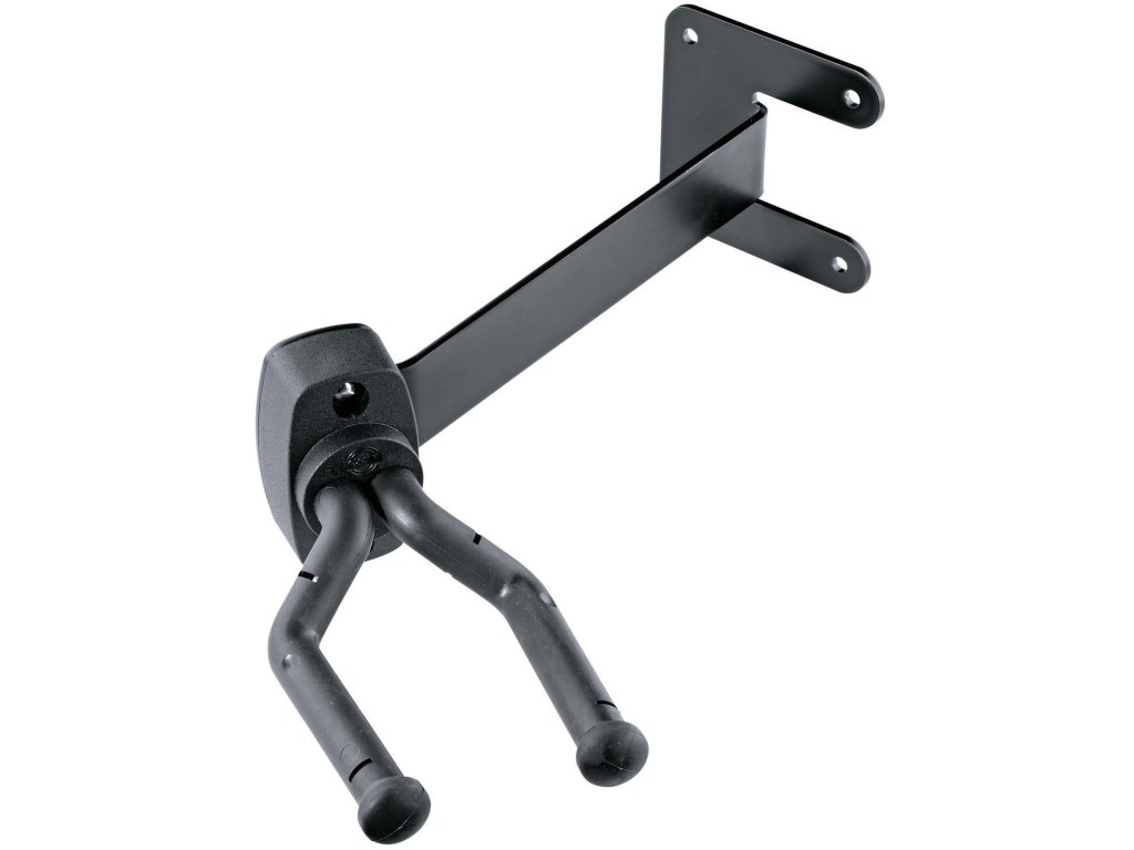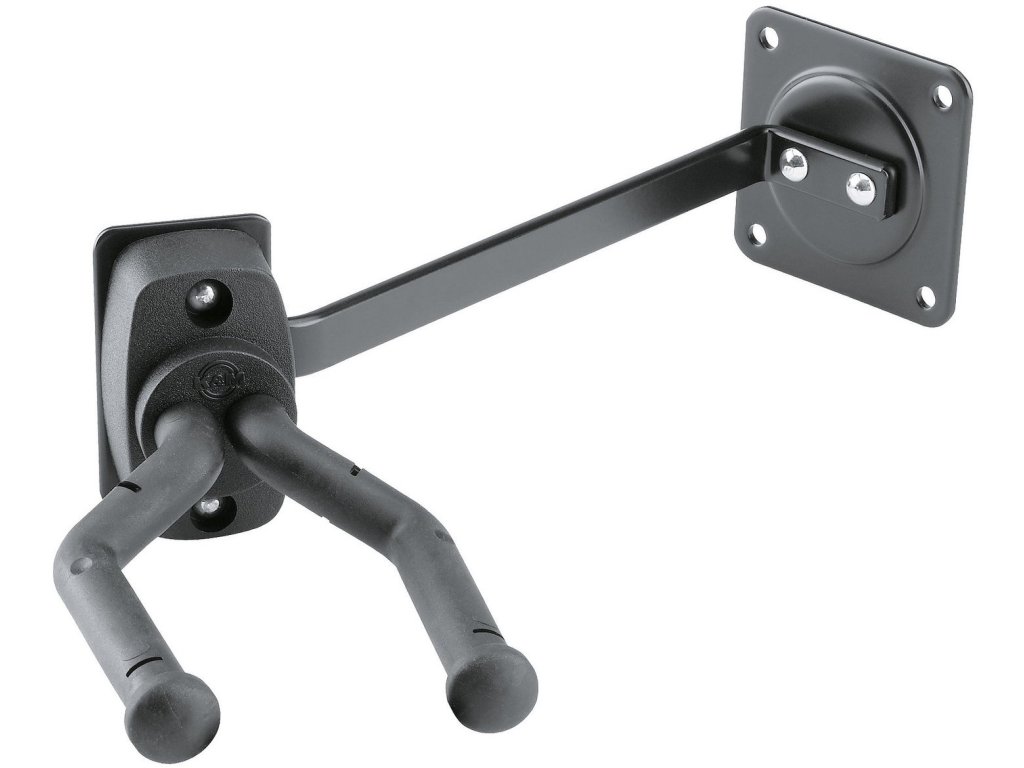 Uchwyt do montażu gitary na ścianie. Ramię można zamontować zarówno z lewej, jak i z prawej strony. Ramiona nośne do mocowania gitary są gumowane. Wymiary 300 x 153 x 70 mm. Odpowiedni do gitar akustycznych i elektrycznych. Produkowany w kolorze czarnym.