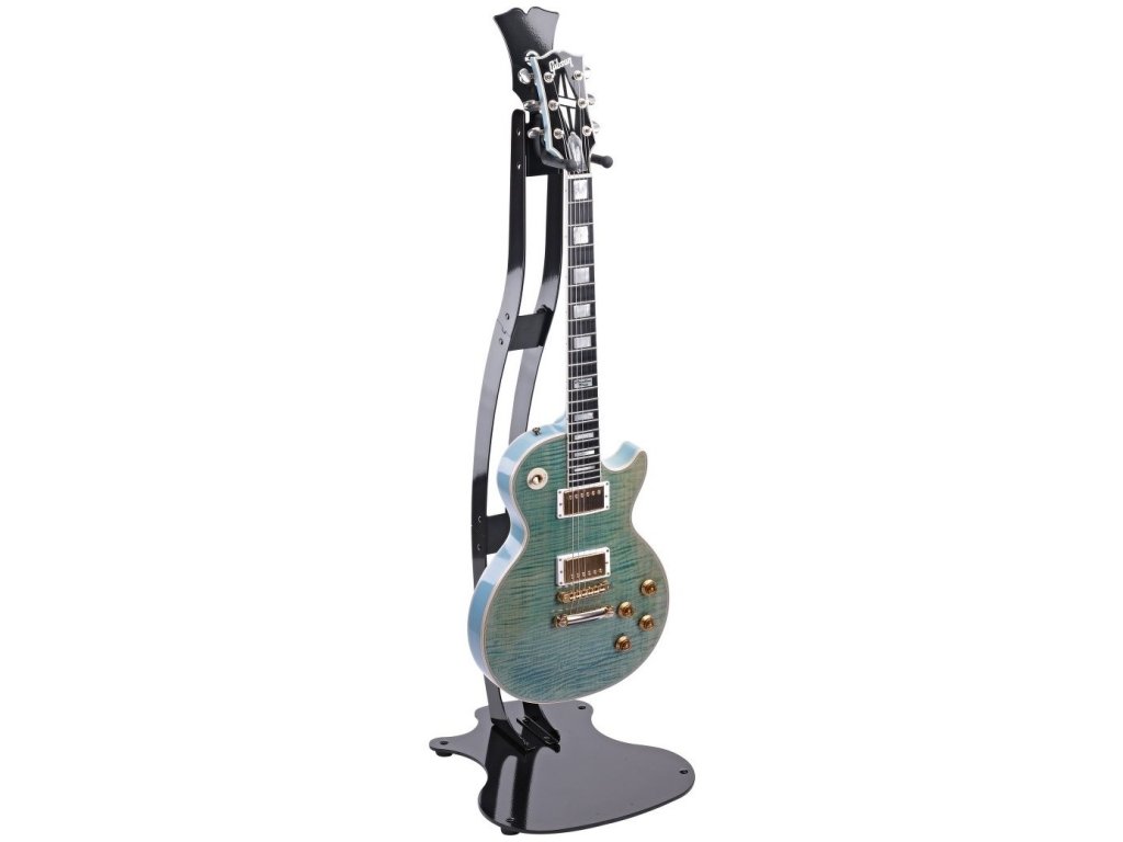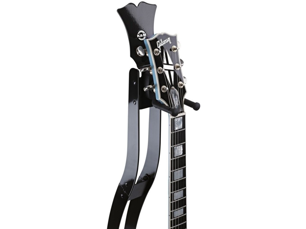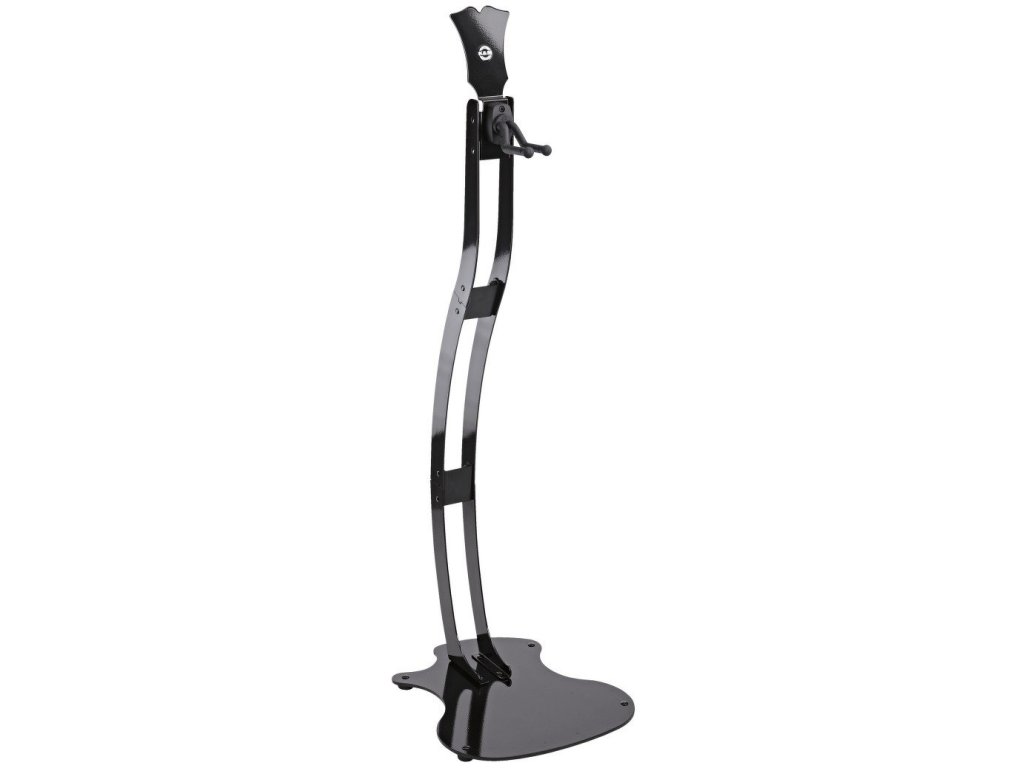 Stojak na gitarę Guitar Station M o atrakcyjnym wyglądzie. Dzięki elastycznie regulowanym, gumowanym uchwytom i wysokości 980 mm nadaje się do większości gitar akustycznych i elektrycznych. Do gitar basowych i gitar z dłuższym korpusem dostępny jest stojak 17640. Solidna metalowa konstrukcja, design z błyszczącym lakierem proszkowym w kolorze czarnym. Zakrzywiona podstawa z pięcioma filcowymi podkładkami zapewnia stabilne ustawienie stojaka.