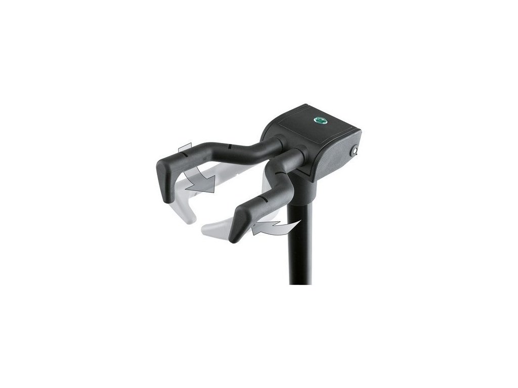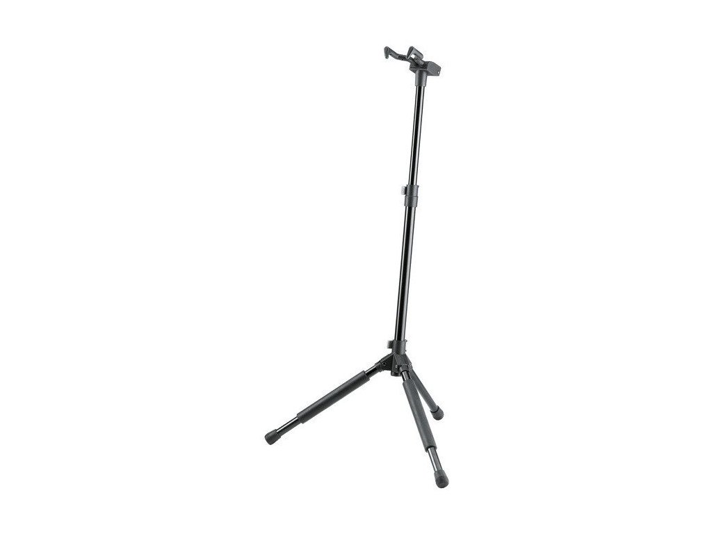 Składany stojak gitarowy »Memphis Pro« z opatentowanym systemem zawieszenia umożliwiającym szybkie umieszczenie szyjki gitary. Wysokość stojaka 550/1000 mm. Odpowiedni do gitar akustycznych i elektrycznych. Ogumowana szyjka stojaka chroni powierzchnię instrumentu. Produkowany w kolorze czarnym.