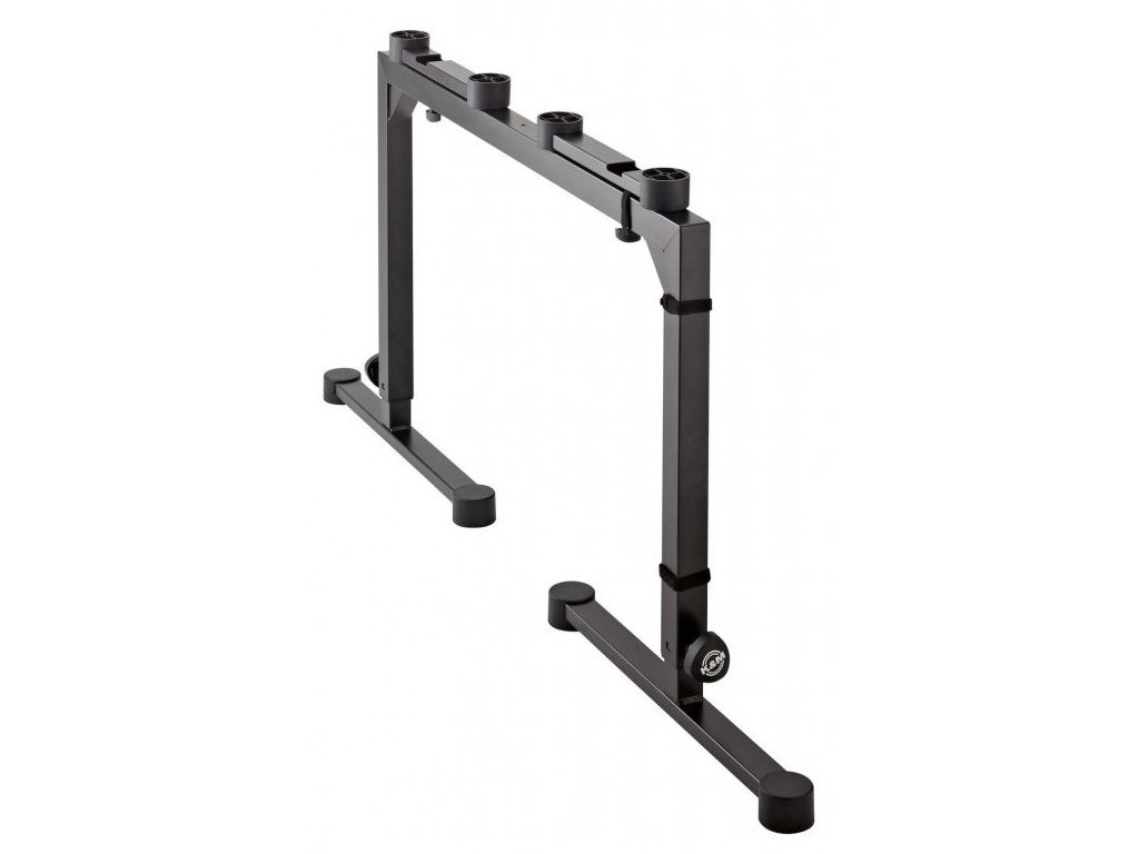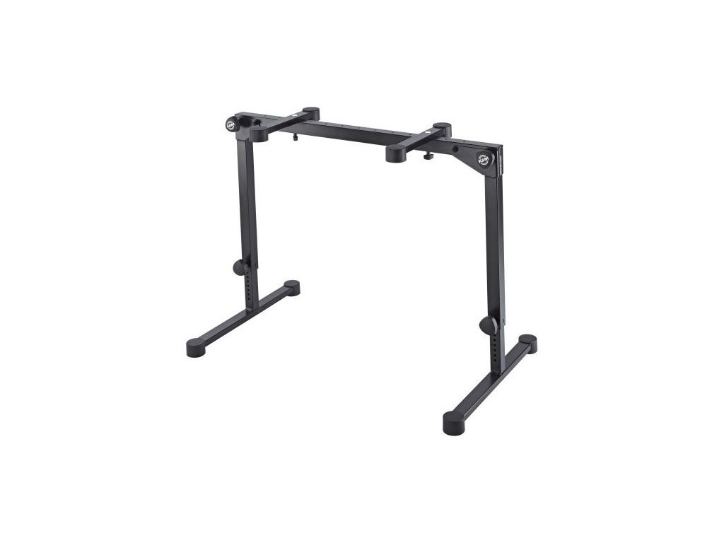 Stojak na keyboard »Omega Pro« o zwartej stalowej konstrukcji. Nośność 80 kg. Duże, okrągłe osłony podłogowe zapewniają dużą stabilność stojaka. Łatwa i precyzyjna regulacja wysokości za pomocą dwóch śrub mocujących. Regulacja ramion nośnych w zależności od wielkości klawiszy. Stojak »Omega Pro« to idealny towarzysz podróży dzięki składanej konstrukcji. Do stojaka można przymocować przystawkę do dodatkowych klawiszy 18811 i 18822. Za pomocą adaptera 18814 można łatwo przymocować uniwersalny uchwyt 18817 do stojaka. W zestawie znajduje się pasek do przenoszenia stojaka.