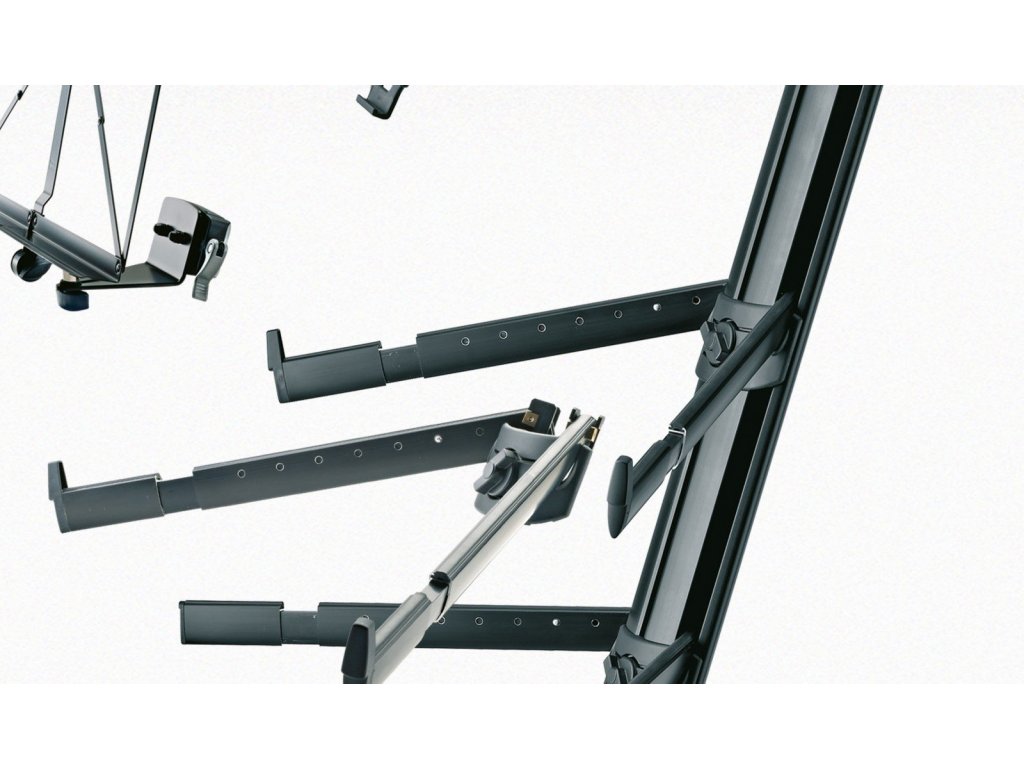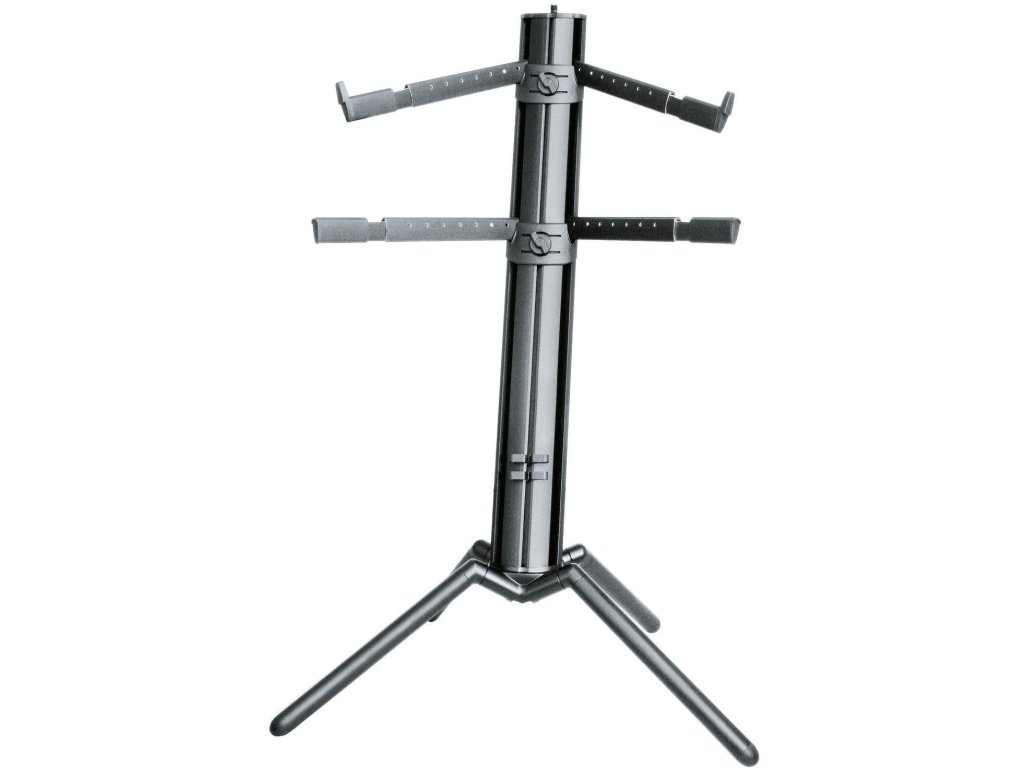 Aluminiowy statyw na keyboard »Spider Pro« z dwoma parami wysuwanych ramion z kątem nachylenia 15°. Można go uzupełnić o dodatkową parę ramion na trzeci keyboard. Nośność ramienia 35 kg. Wysokość statywu 1310 mm. Statyw posiada gwint 3\/8" lub 5\/8" do mocowania uchwytu mikrofonu. Płynna regulacja wysokości z podwyższoną konstrukcją nóg. Produkowany jest w wariantach: czarnym, srebrnym i czerwonym.