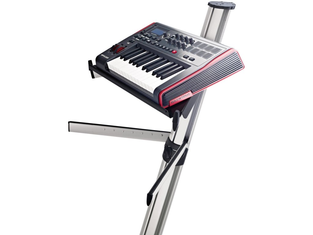 Stabilny aluminiowy uchwyt na klawisze do statywu klawiszowego »Spider Pro«. Wymiary 640 x 326 x 25 mm. Po umieszczeniu uchwytu w górnej części statywu »Spider Pro« można na nim umieścić małe syntezatory, kontrolery, automaty perkusyjne itp. Zintegrowany uchwyt może być również wykorzystywany do kabli. Ochronne, antypoślizgowe gumowe końcówki. Produkowany w kolorze czarnym.