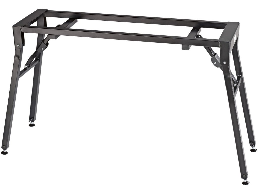Stabilny i wytrzymały statyw na keyboard. Wysokość 600/1000 mm regulowana bez użycia narzędzi. Indywidualna regulacja wysokości dla każdej nogi, śruby do poziomowania nierówności podłogi. Łatwy transport. Szerokość 900 mm. Nośność 80 kg. Szeroka gama opcjonalnych akcesoriów, np. nasadka na dodatkowe klawisze 18952, uchwyt na laptopa 18815 lub uniwersalny uchwyt 18817. Stojak produkowany jest w kolorze czarnym.