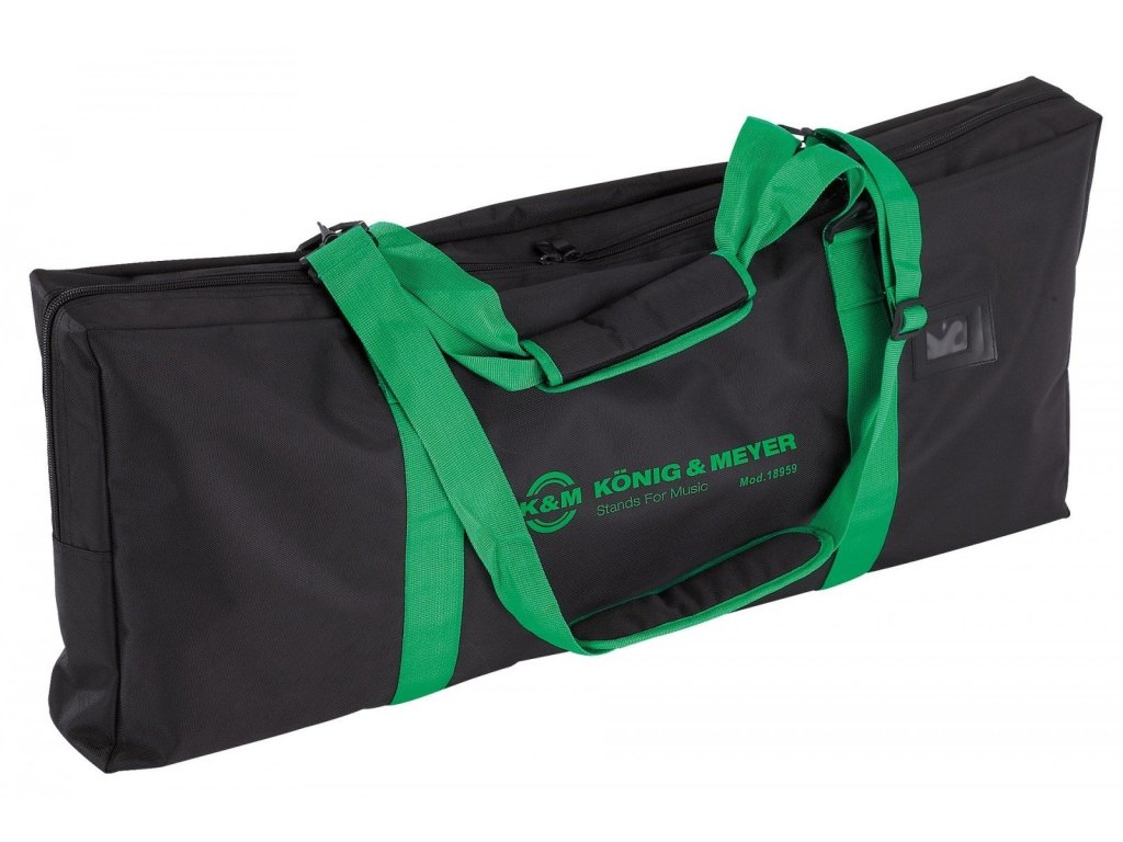 Pokrowiec na statyw klawiszowy 18950 wykonany z wodoodpornego nylonu. Zamykany na zamek błyskawiczny, posiada wyściełany uchwyt i regulowany pasek na ramię. Na spodzie znajdują się gumowane plastikowe nóżki. Wymiary pokrowca 1150 x 550 x 100 mm.