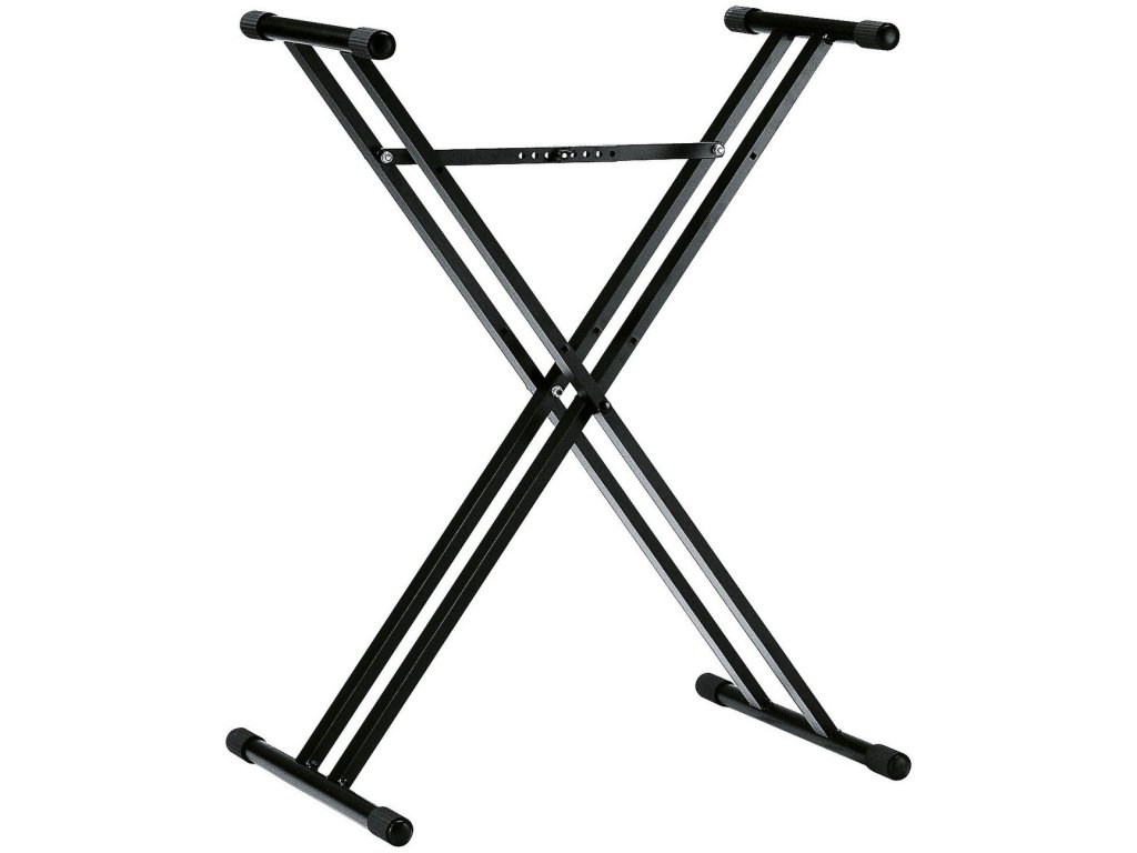 Stabilny stalowy statyw X na duże instrumenty klawiszowe. Unikalny mechanizm regulacji wysokości. Wysokość statywu 400/905 mm, szerokość 470/760 mm. Nośność 50 kg. Produkowany w kolorze czarnym.