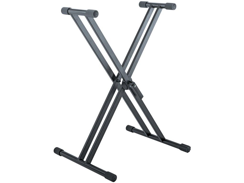 Komfortowy i niezwykle wytrzymały stalowy statyw klawiszowy X »Rick 20«. Ergonomiczny mechanizm zaciskowy umożliwia szybkie i łatwe rozkładanie i regulację. Wytrzymały metalowy przegub można regulować w 5-stopniowych odstępach, co pozwala na wykorzystanie szerokiej gamy pozycji. Cztery antypoślizgowe gumowe końcówki i głębokość 250 mm umożliwiają użycie statywu do wszystkich typów klawiszy. Wysokość 594/946 mm. Szerokość 327/789 mm. Nośność 50 kg. Dostępny w kolorze czarnym i białym.