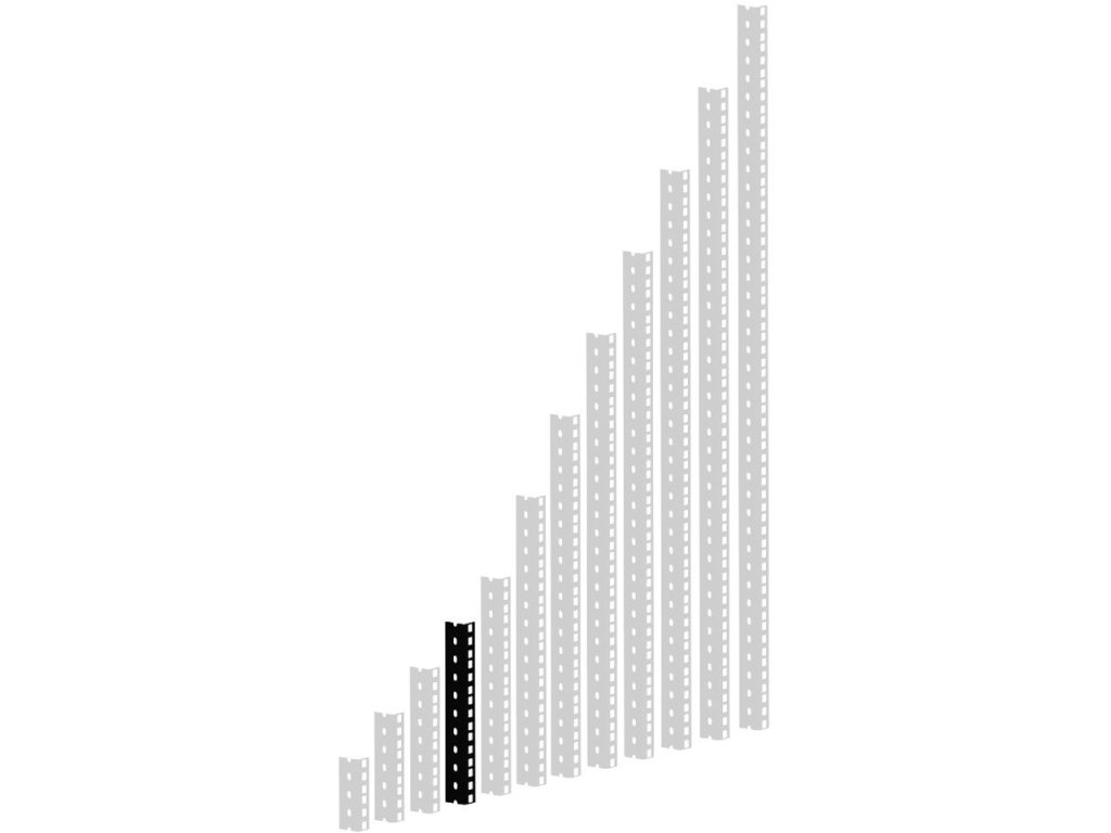 Wytrzymały profil rack, podobny do 61352BLK, ale z trzema otworami na U. Rozmiar otworu 9,5 mm (zgodnie z IEC 60297).