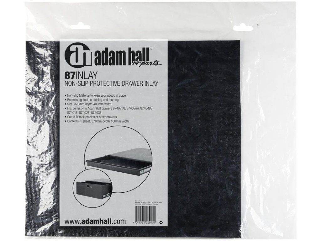 Powierzchnia antypoślizgowa, zapobiega ślizganiu się i zarysowaniom, do szuflad regałowych, półek itp. Wymiary 400 x 370 mm. Idealny do wszystkich szuflad regałowych Adam Hall (nr pozycji 87402, 87402 A, 87403, 87403 A, 87404, 87404 A, 87401E, 87402E, 87403E).