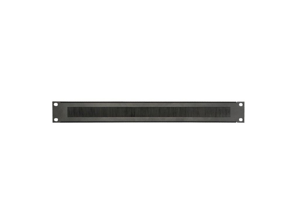 Panel stojaka w kształcie litery U z listwą szczotkową do przepuszczania złączy i kabli.