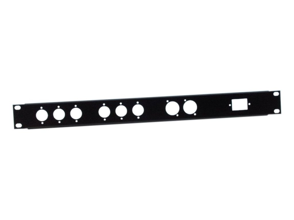 Panel rack 1 U z perforowanymi otworami na 2 x żeńskie XLR, 6 x męskie XLR i 1 x gniazdo sieciowe IEC.