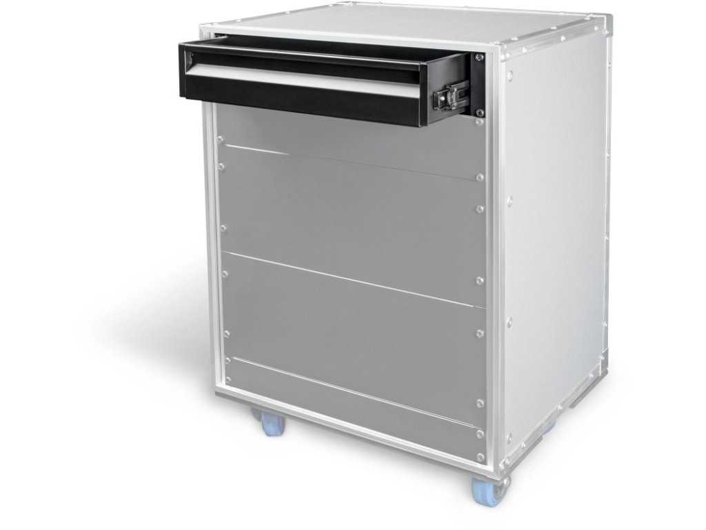 Jeśli chcesz utrzymać porządek w swojej szafie rack i wygodnie oraz bezpiecznie przechowywać akcesoria i kable, ERGO ma wytrzymałą szufladę nośną do codziennych, wymagających podróży. Aluminiowa szuflada rack o grubości 1,5 mm płynnie porusza się na teleskopowych szynach z łożyskami kulkowymi i można ją całkowicie wysunąć lub całkowicie wyjąć.
