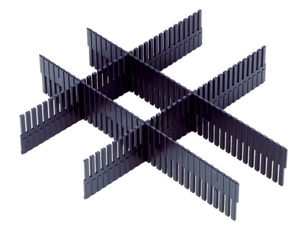 Przegroda do szuflady Adam Hall Rack 2U lub wyższej. P1 pasuje do szerokości szuflady, P2 do głębokości. Aby utworzyć dodatkowe przegródki, użyj dowolnej ich liczby.