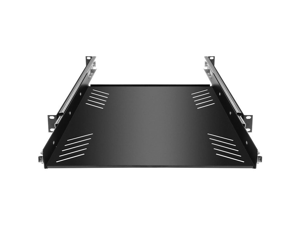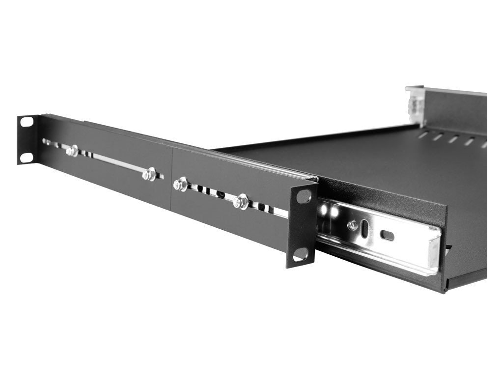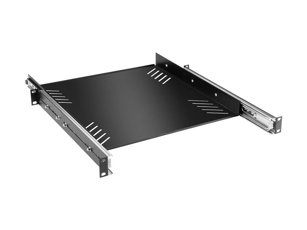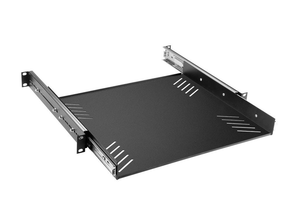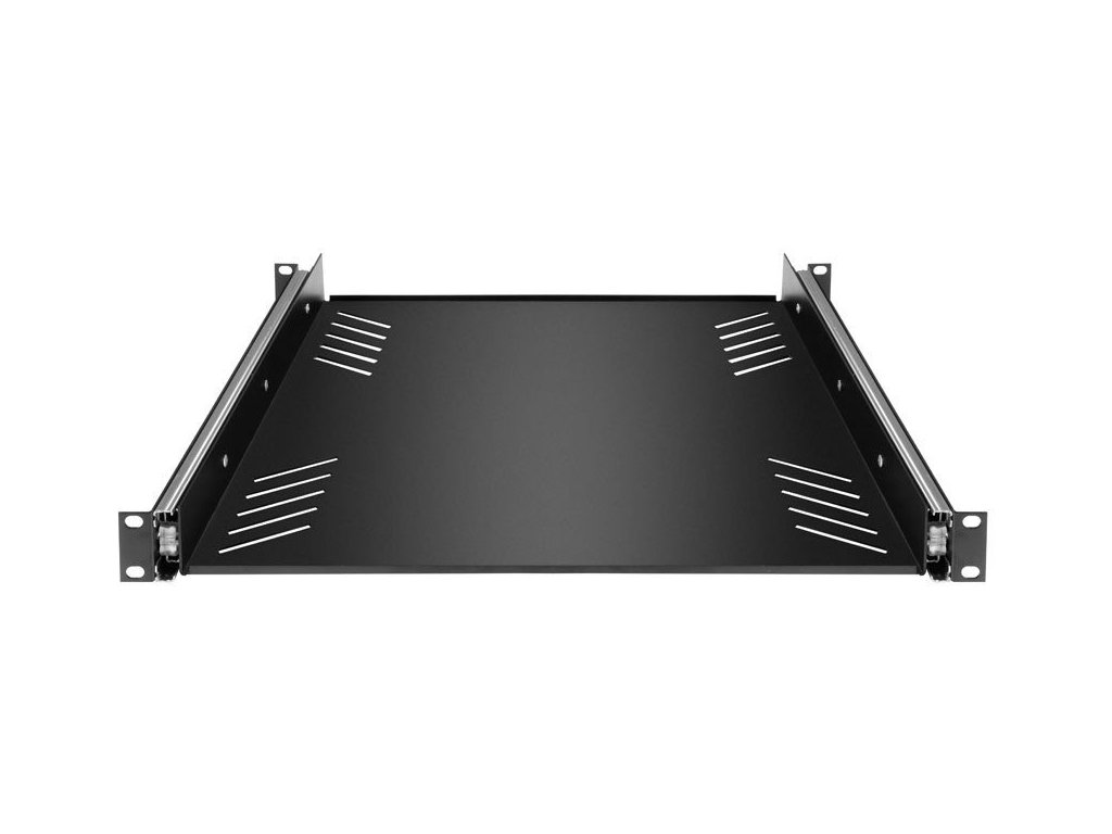 Półka rack 19", 1U, z wysuwanymi prowadnicami.