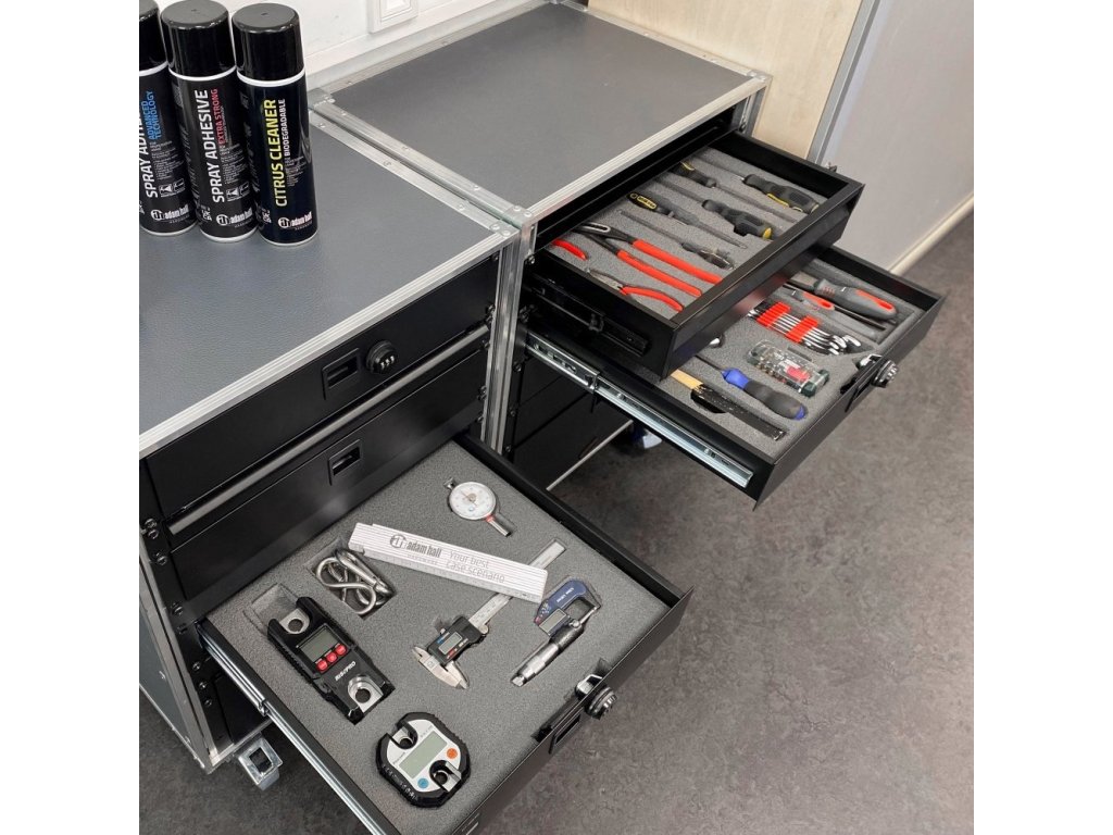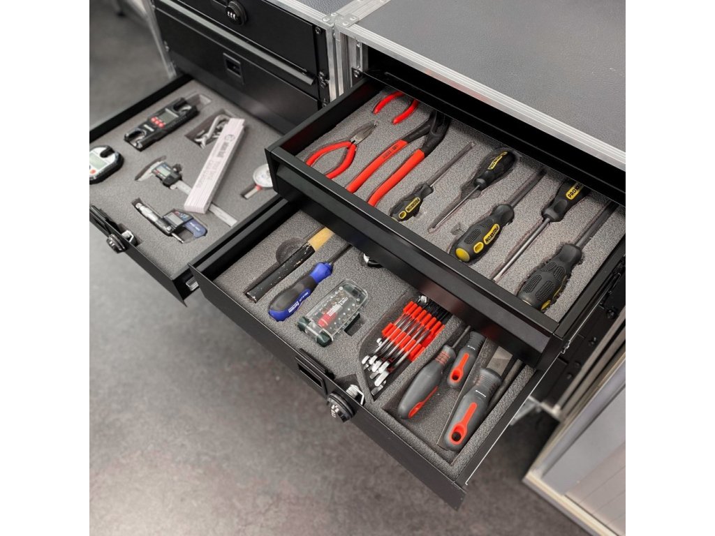 Dostępnych jest wiele produktów i opcji, które ułatwiają sortowanie i organizację zawartości szuflad szaf rack 19". Wszystkie produkty oferują doskonałe rozwiązania, od wkładek piankowych do mikrofonów po regulowane przegrody i wstępnie wycięte elementy piankowe. Pianka Kyoto oferuje jednak niespotykany poziom adaptacji i elastyczności przy zachowaniu trwałości i stabilności.