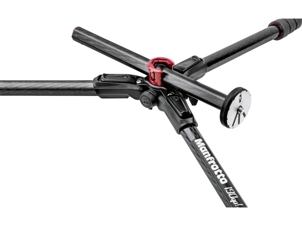 Nogi karbonowych statywów serii M można łatwo ustawić pod 4 różnymi kątami, co pozwala fotografom intuicyjnie, łatwo i bez wysiłku znaleźć odpowiednią wysokość statywu bez utraty koncentracji na ujęciu. Podobnie jak w innych wersjach profesjonalnych statywów serii Manfrotto 190, w górnej części środkowego odlewu 190go! Złącze Easy Link. Seria M jako mobilne studio, umożliwiająca trzymanie reflektora LED lub innych akcesoriów dla maksymalnej swobody twórczej, umożliwiająca wykonywanie zdjęć, które wcześniej były osiągalne tylko ze statywami z mnóstwem akcesoriów.